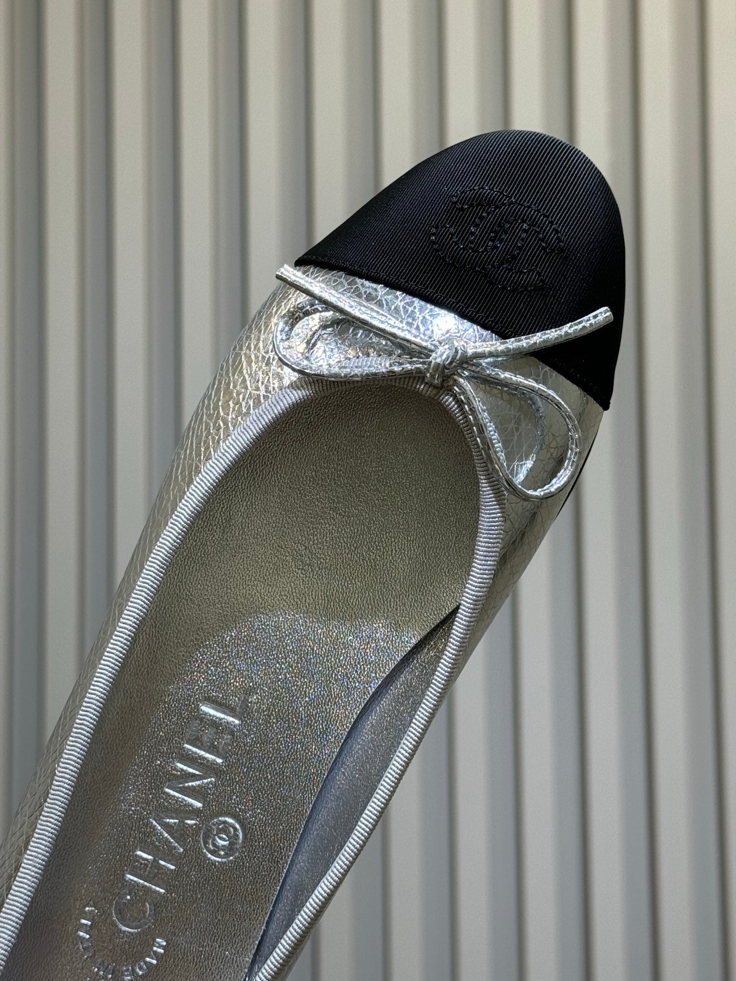 CC 26ss Ballet Flats Black Sliver Leather Fabric 623150