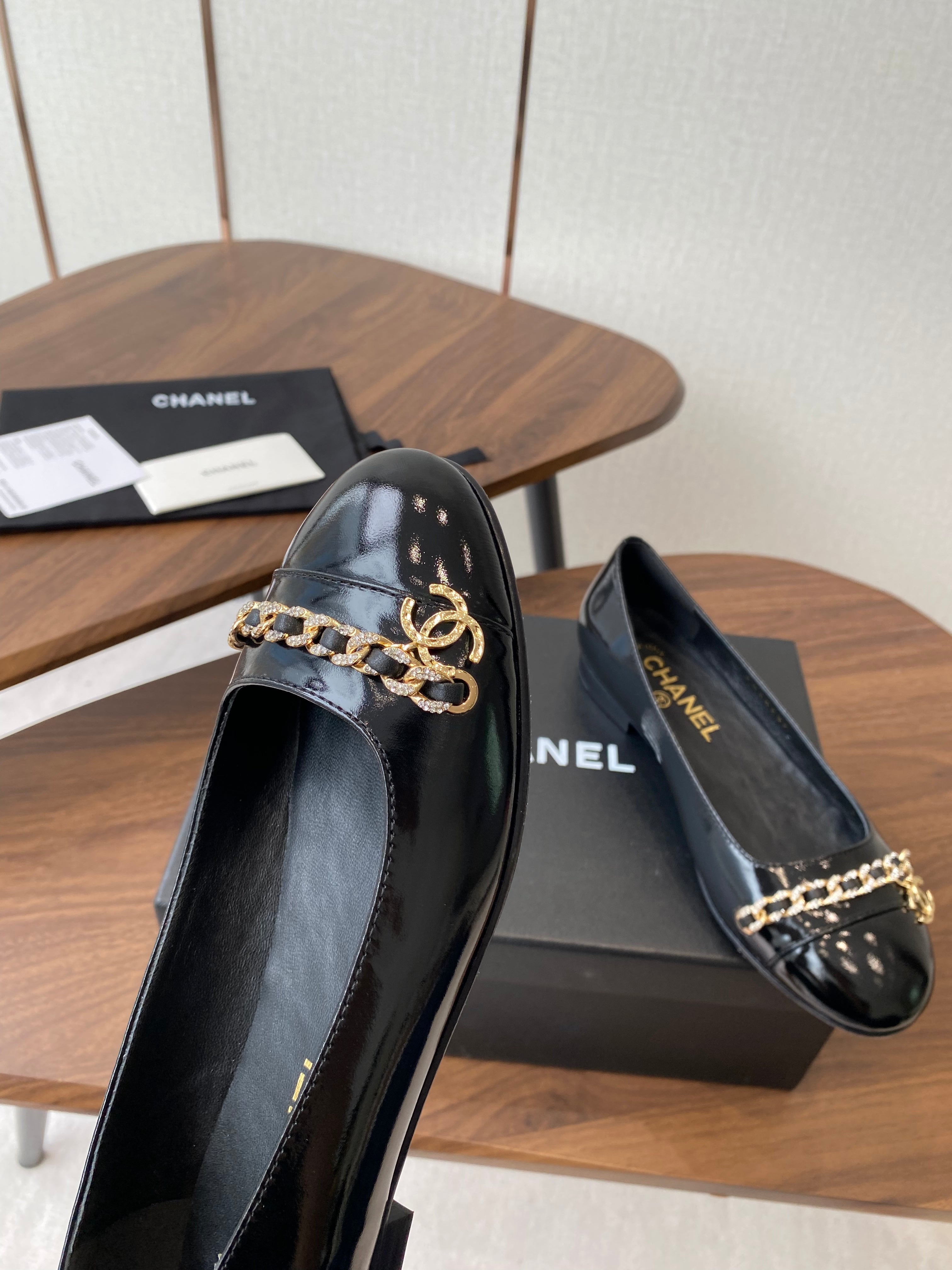 CC Ballerina Chain Flats Black Patent Leather GHW 431483