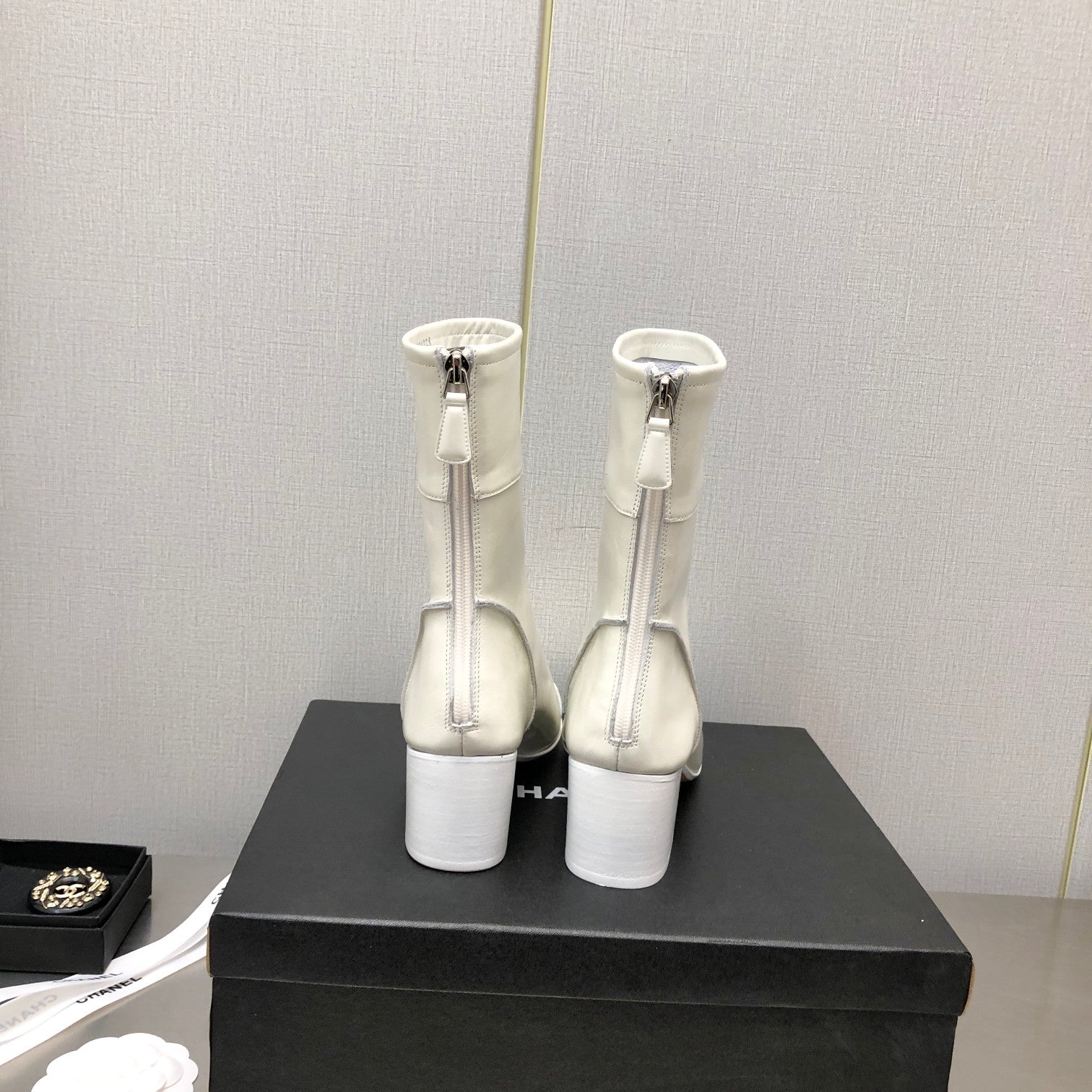 BLOCK HEEL ANKLE BOOTS IN WHITE CALFSKIN