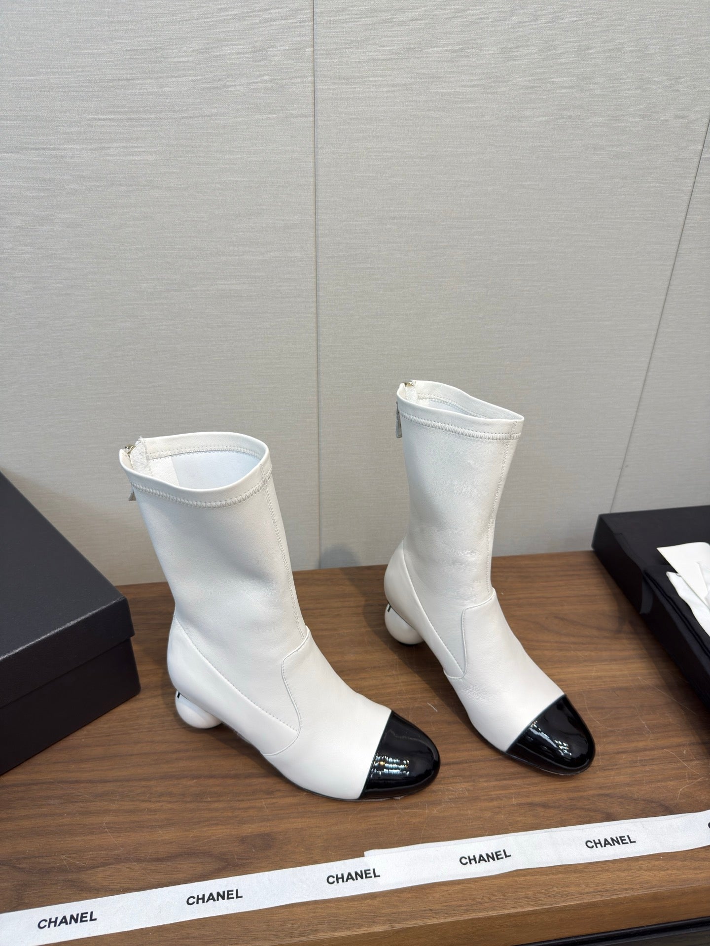 CC 25B Double C Giant Pearl Ankle Boots 50mm White Sheepskin 465703