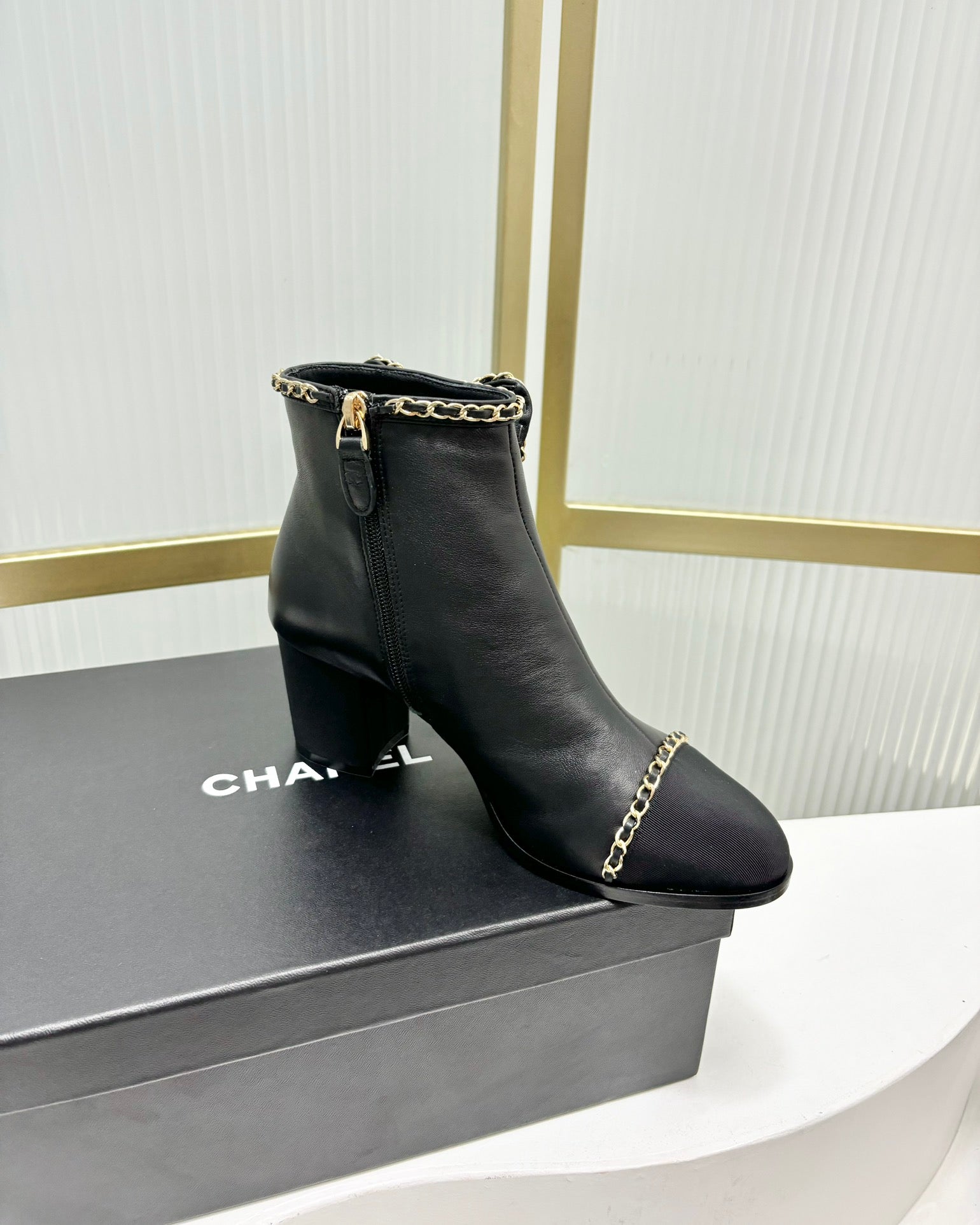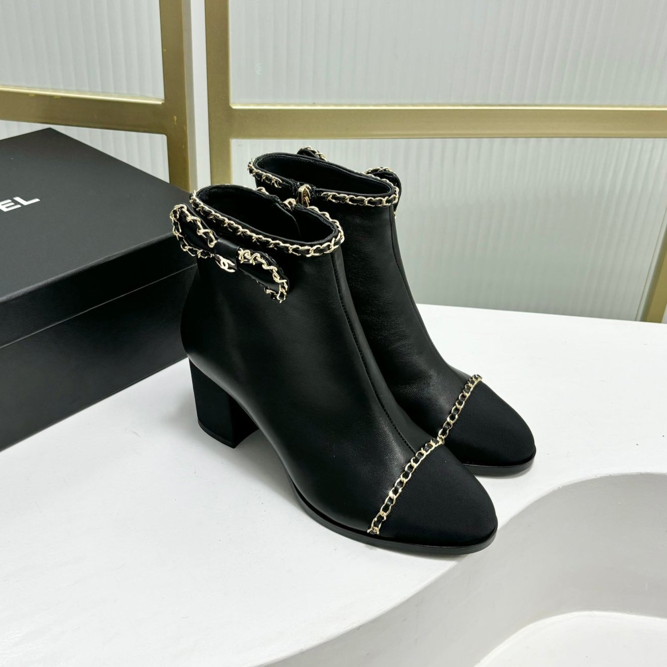 CC Ankle Boot 65 Black Calfkin Grosgrain Leather Strap