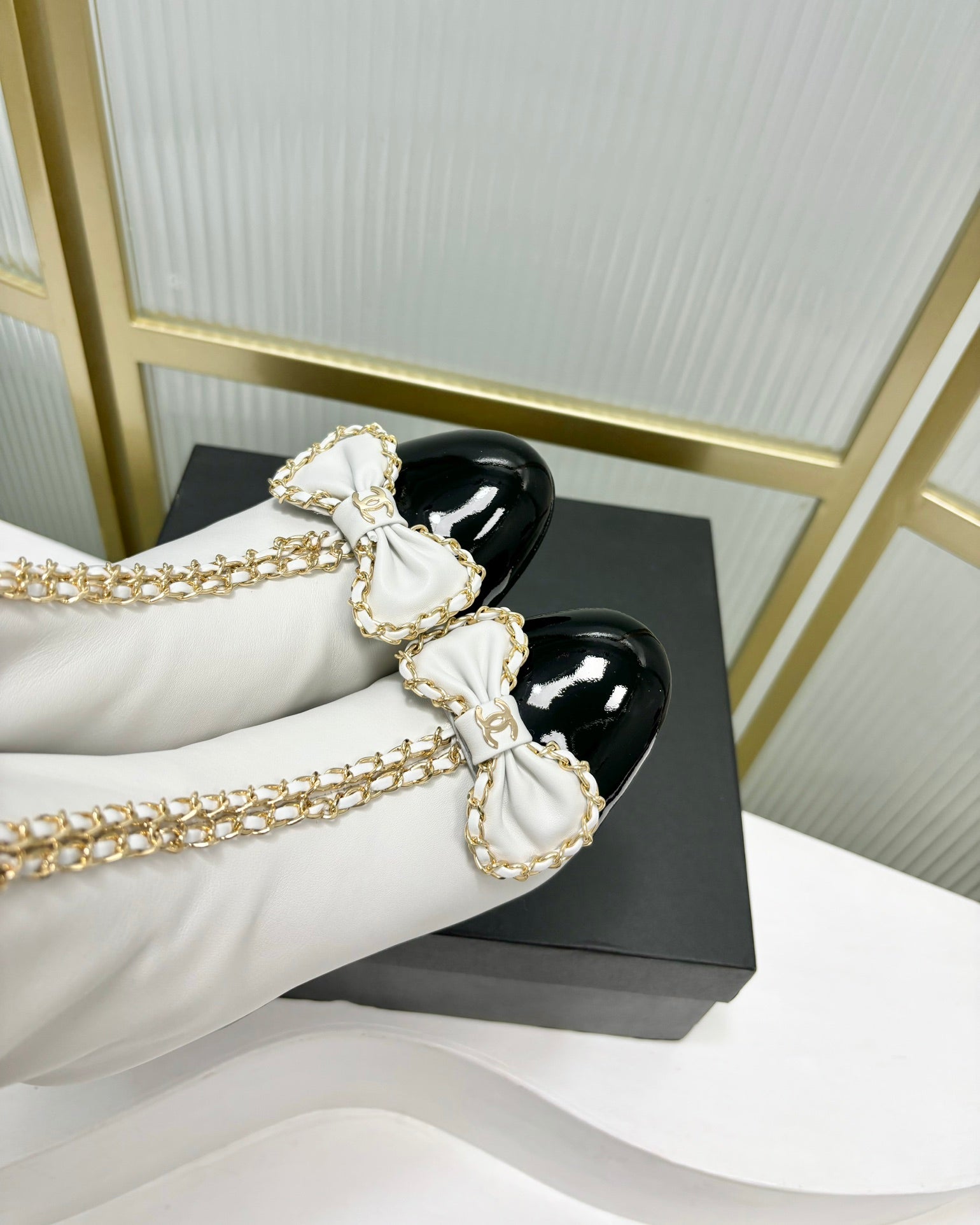CC Ankle Boot 65 White Calfskin Black Patent Calfksin Leather Strap