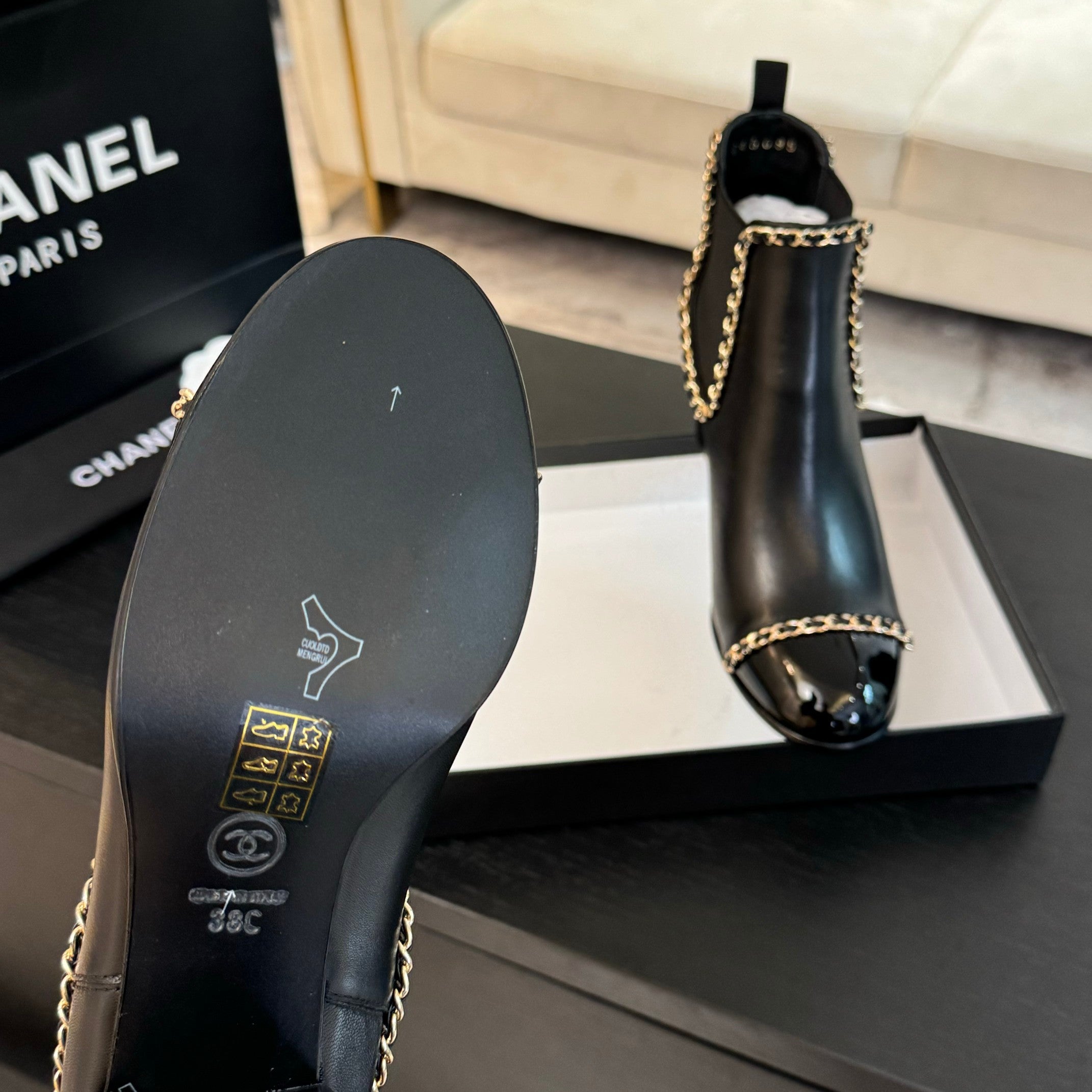CC Ankle Boots Black Chain Cowhide