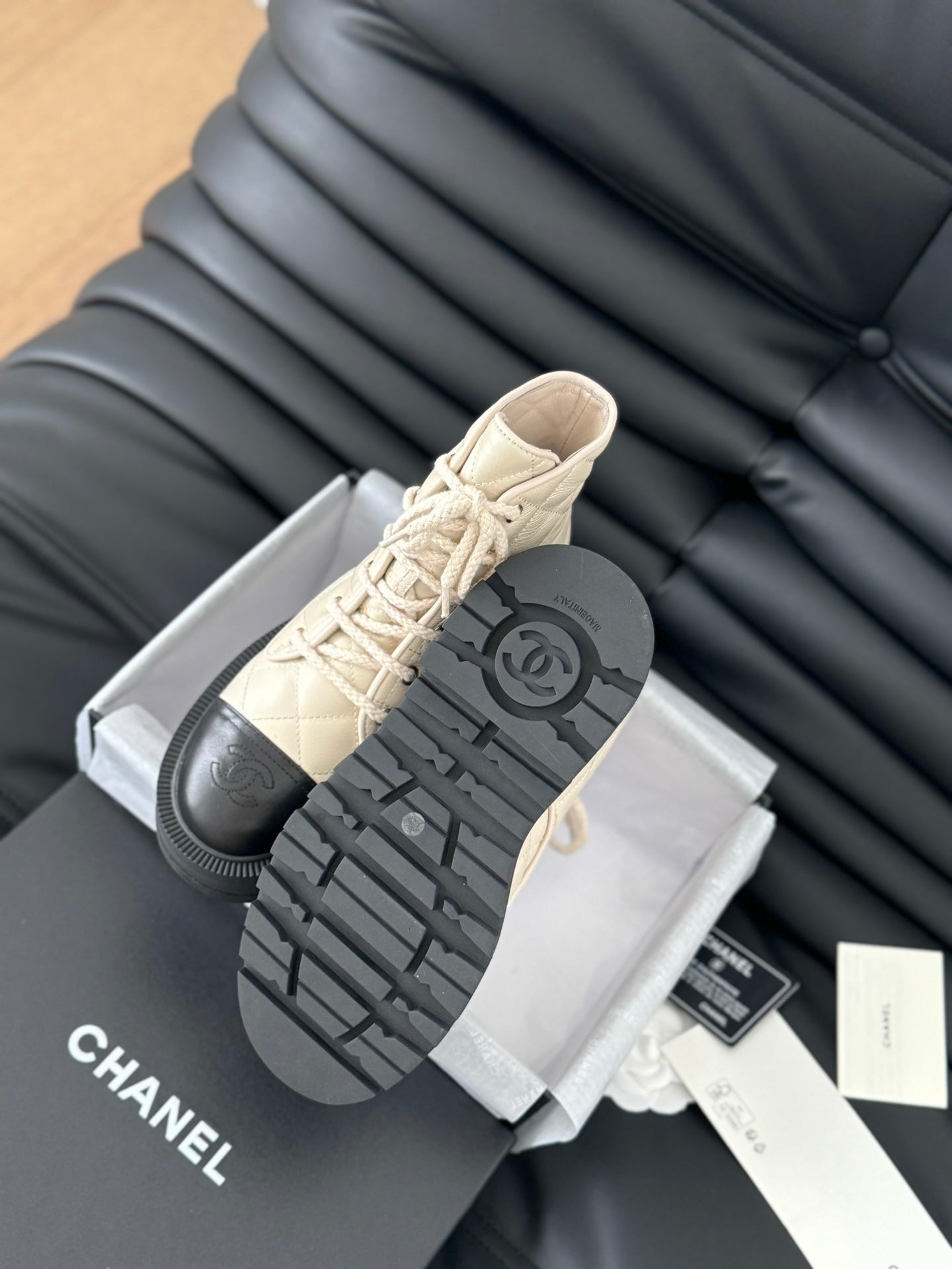 cc ankle boots cream quilted lambskin