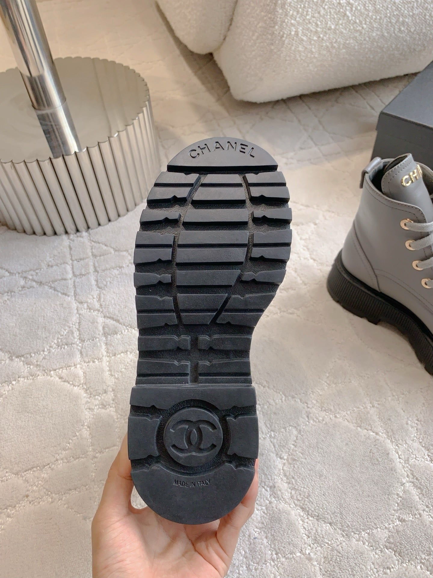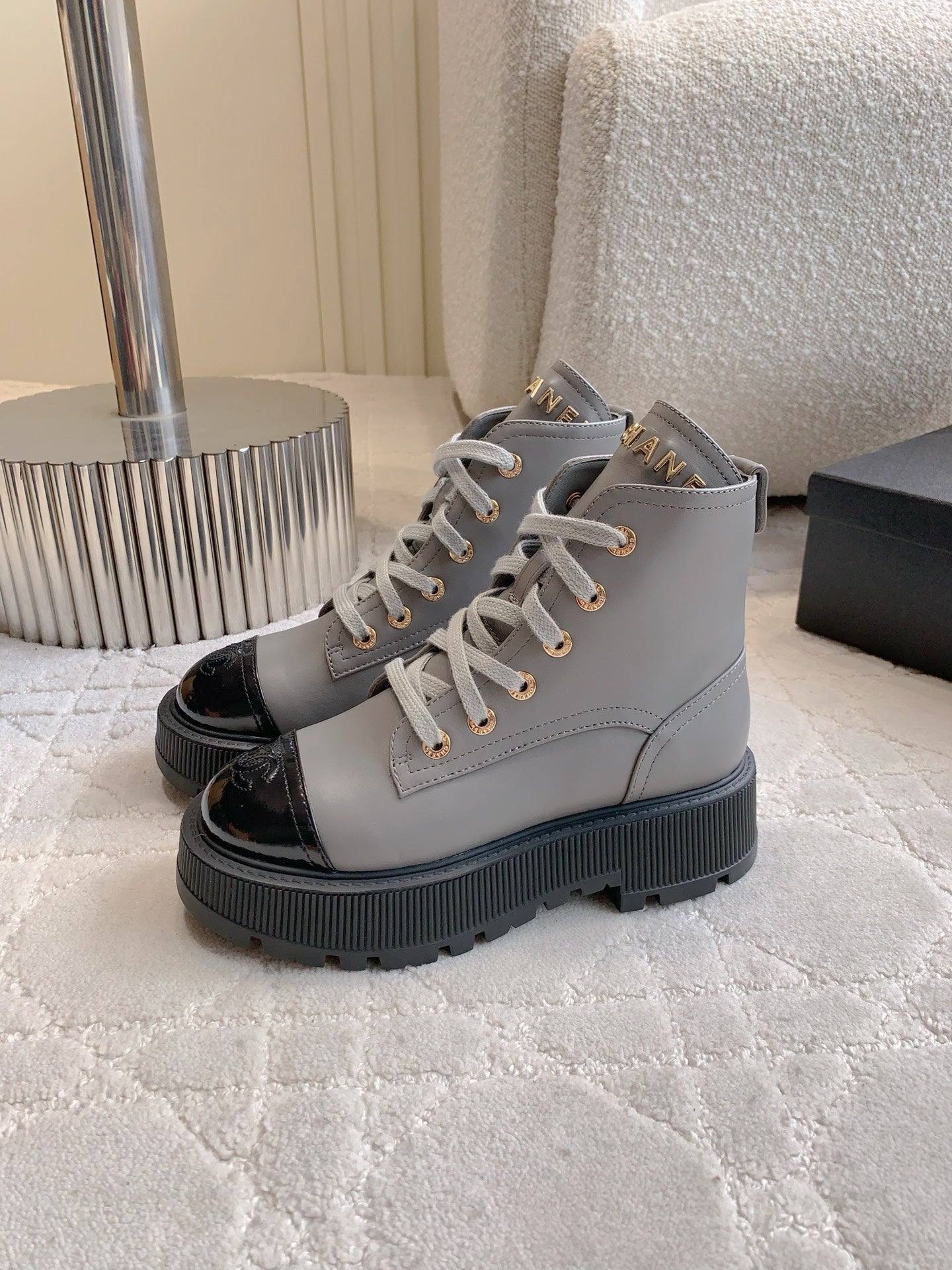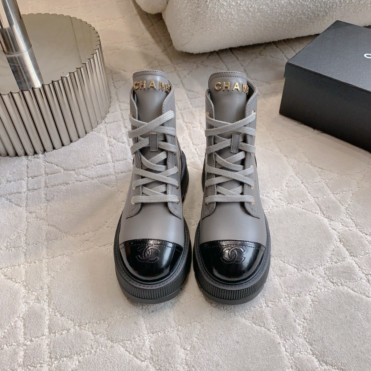 CC 24 Combat Boots 50mm Grey Black Calfskin & Sheepskin 404288