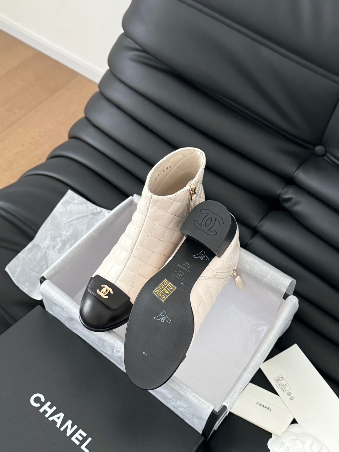 CC SHORT BOOTS 65 MM IN WHITE MIX BLACK QUILTED PATTERN LAMBSKIN
