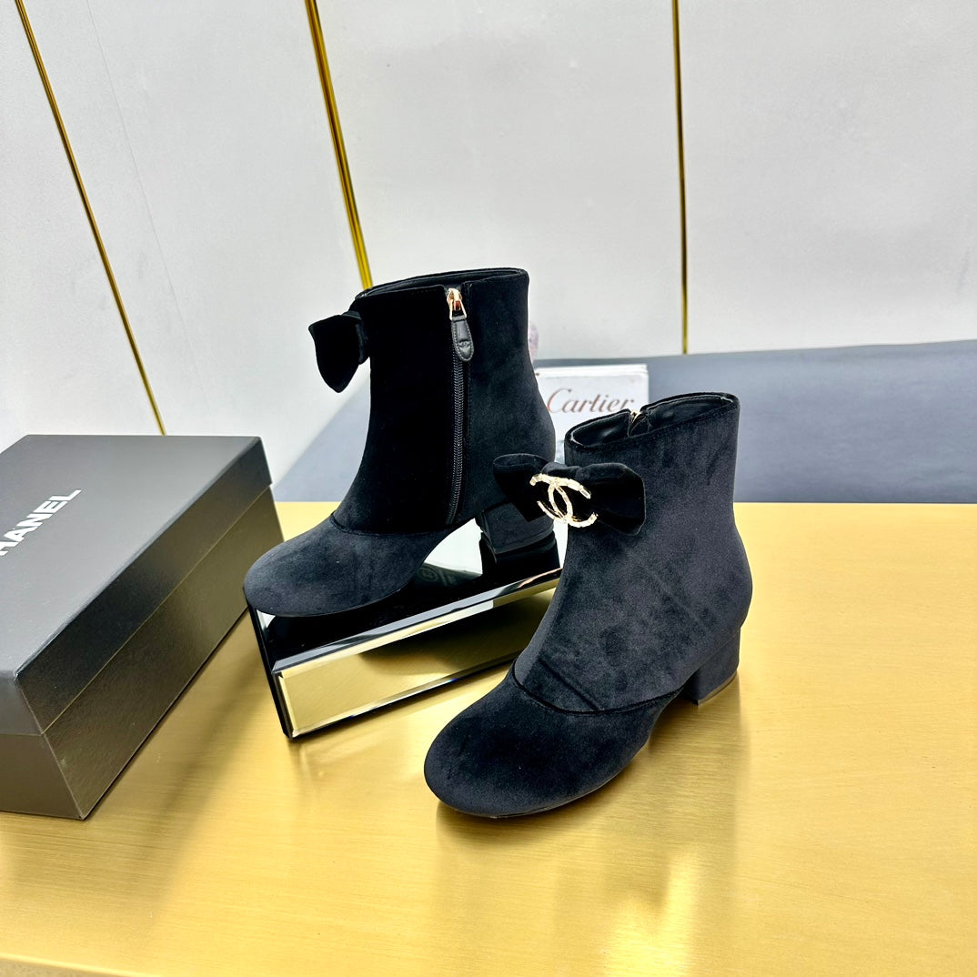 CC Bow-Adorned Rhinestone Boots Black Velvet 564597