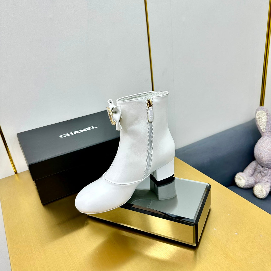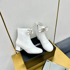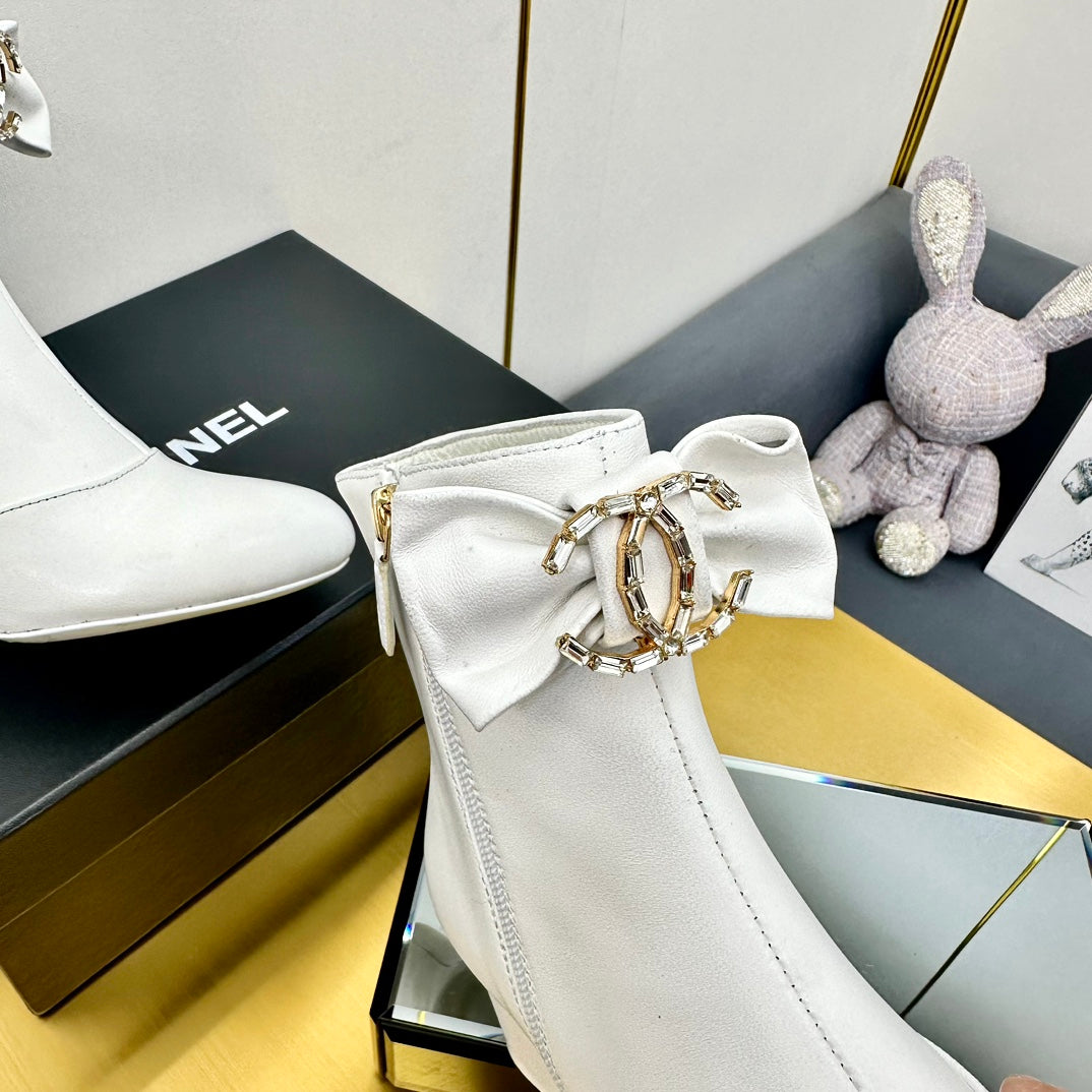 CC Bow-Adorned Rhinestone Boots White Cowhide 564596