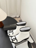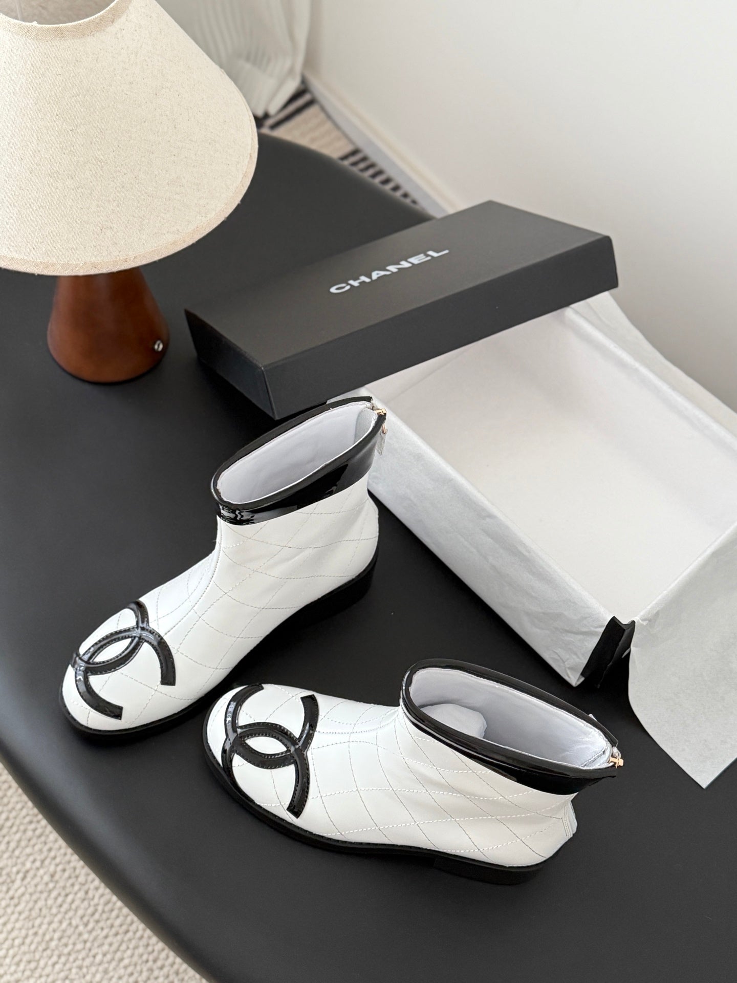 CC Cambon Ankle Boots Black White Cowhide Patent Leather 540762