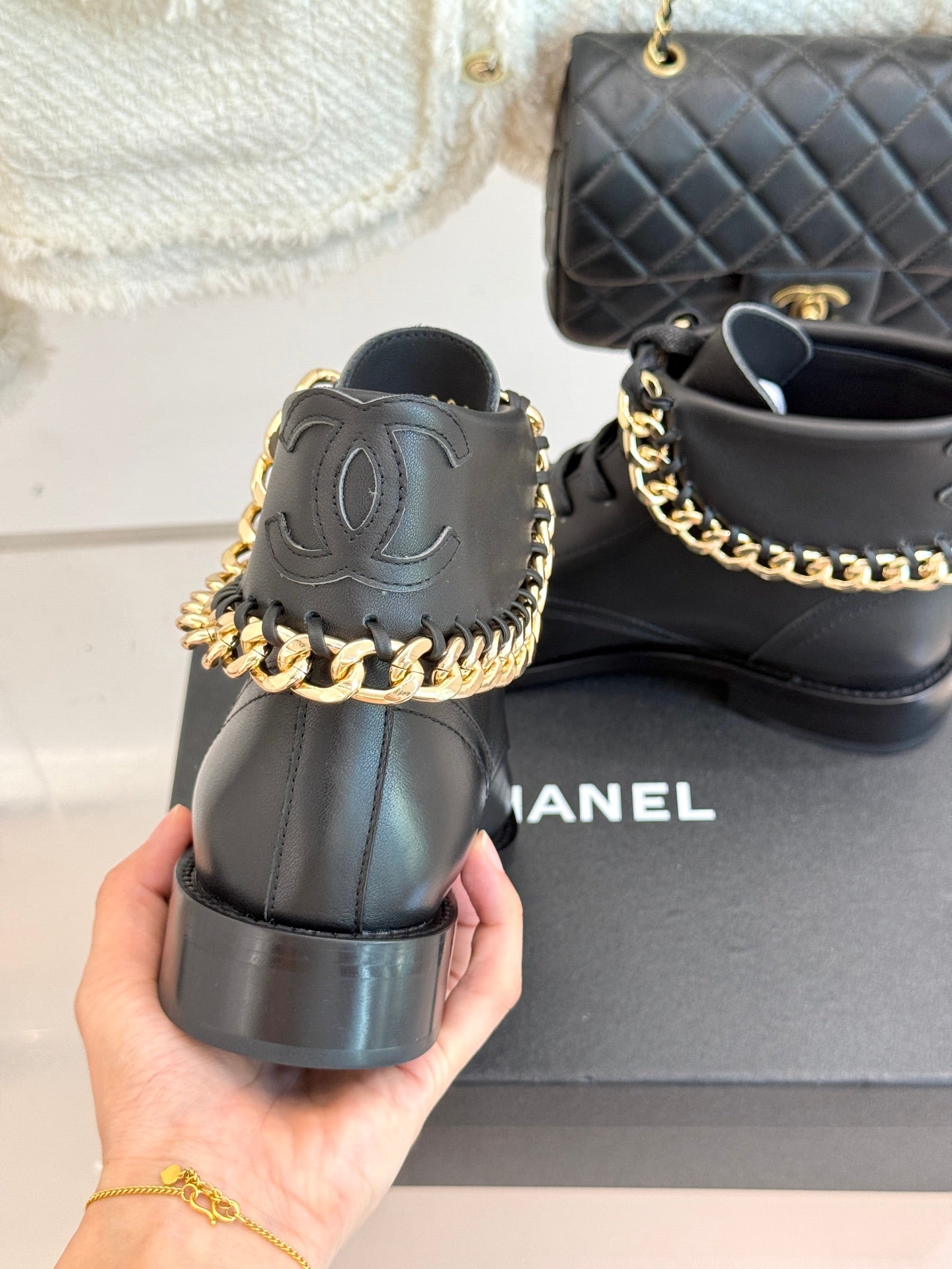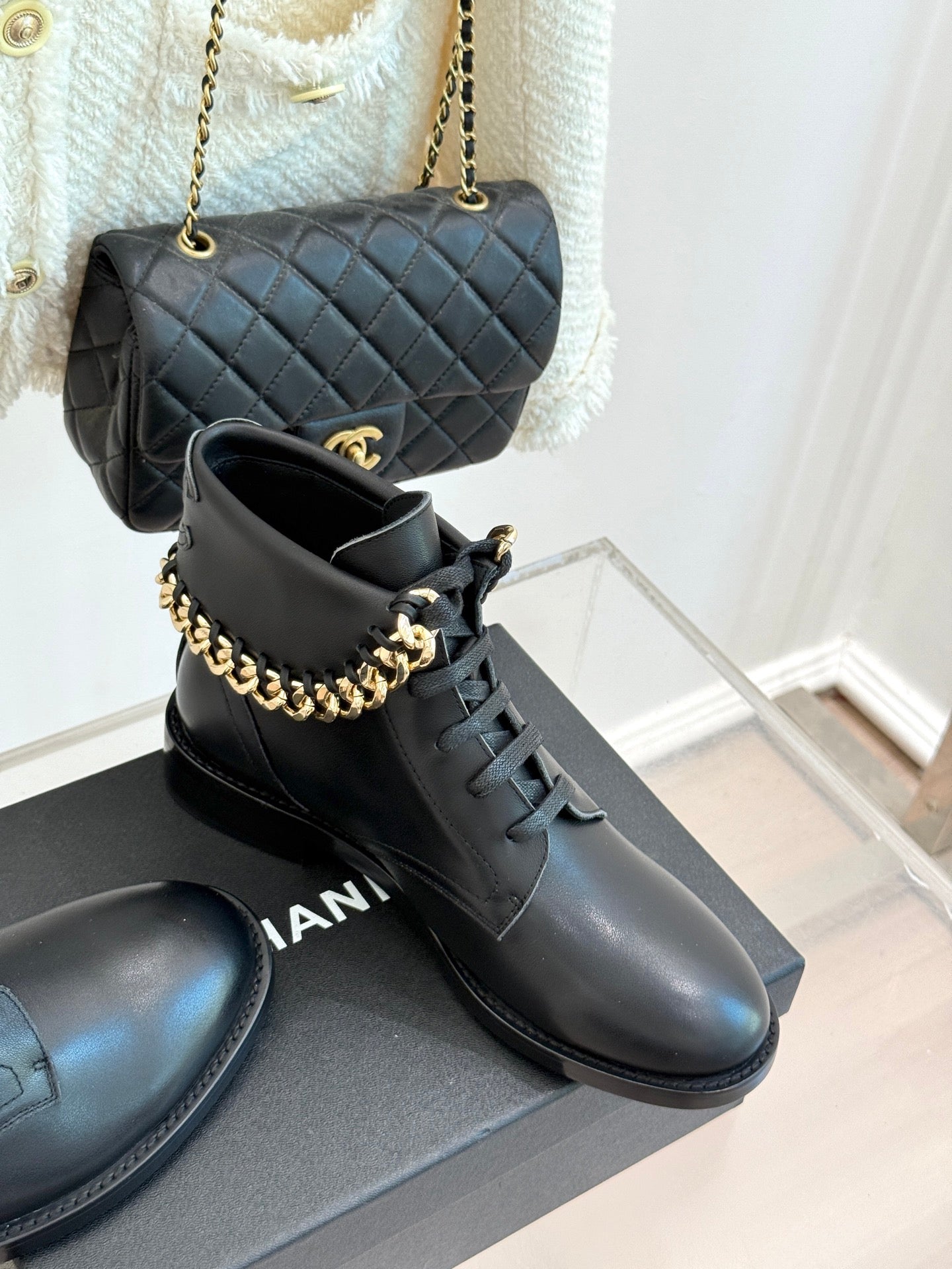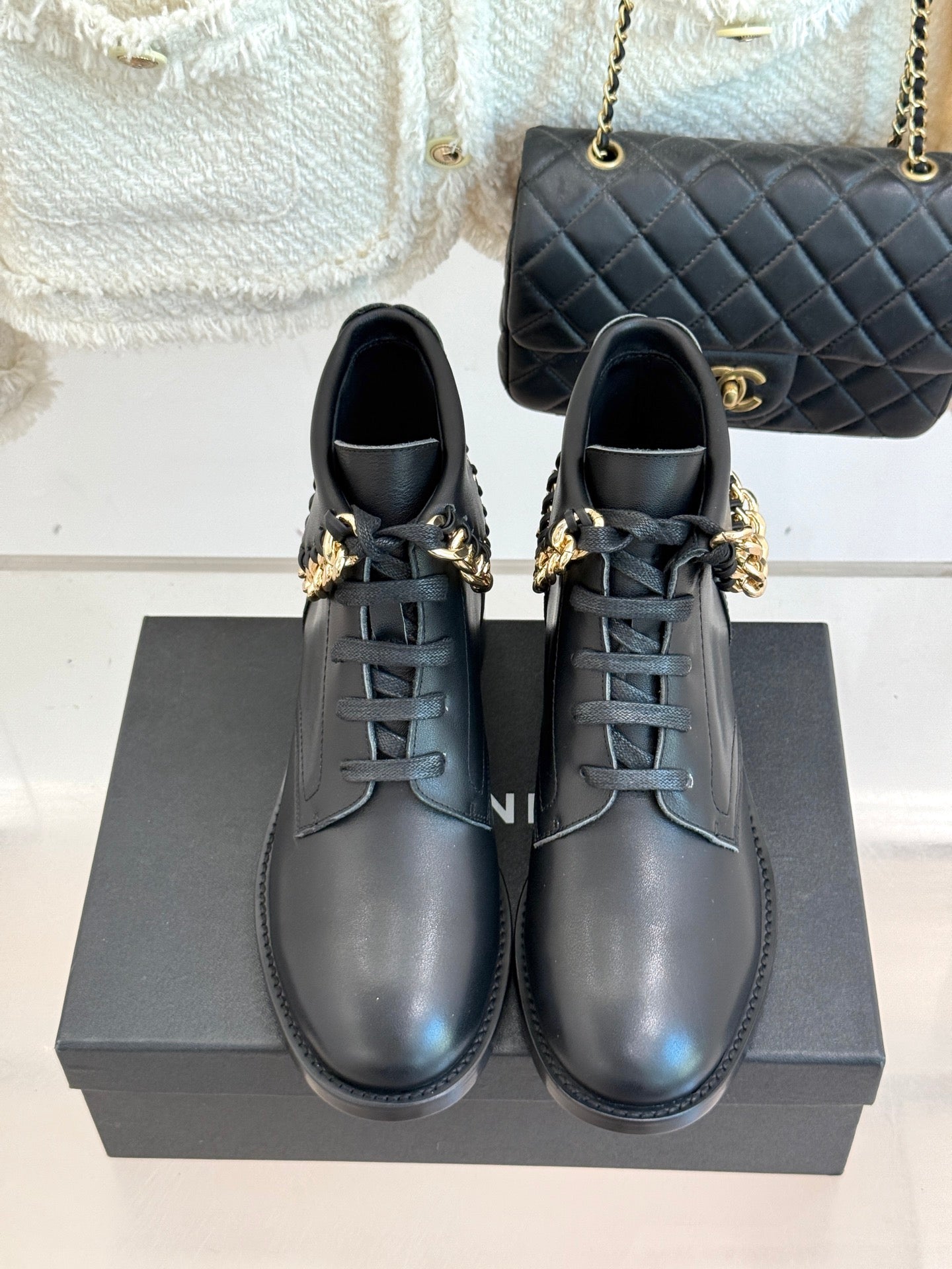 CC Classic Large Chain Martin Booots Black Sheepskin 404668