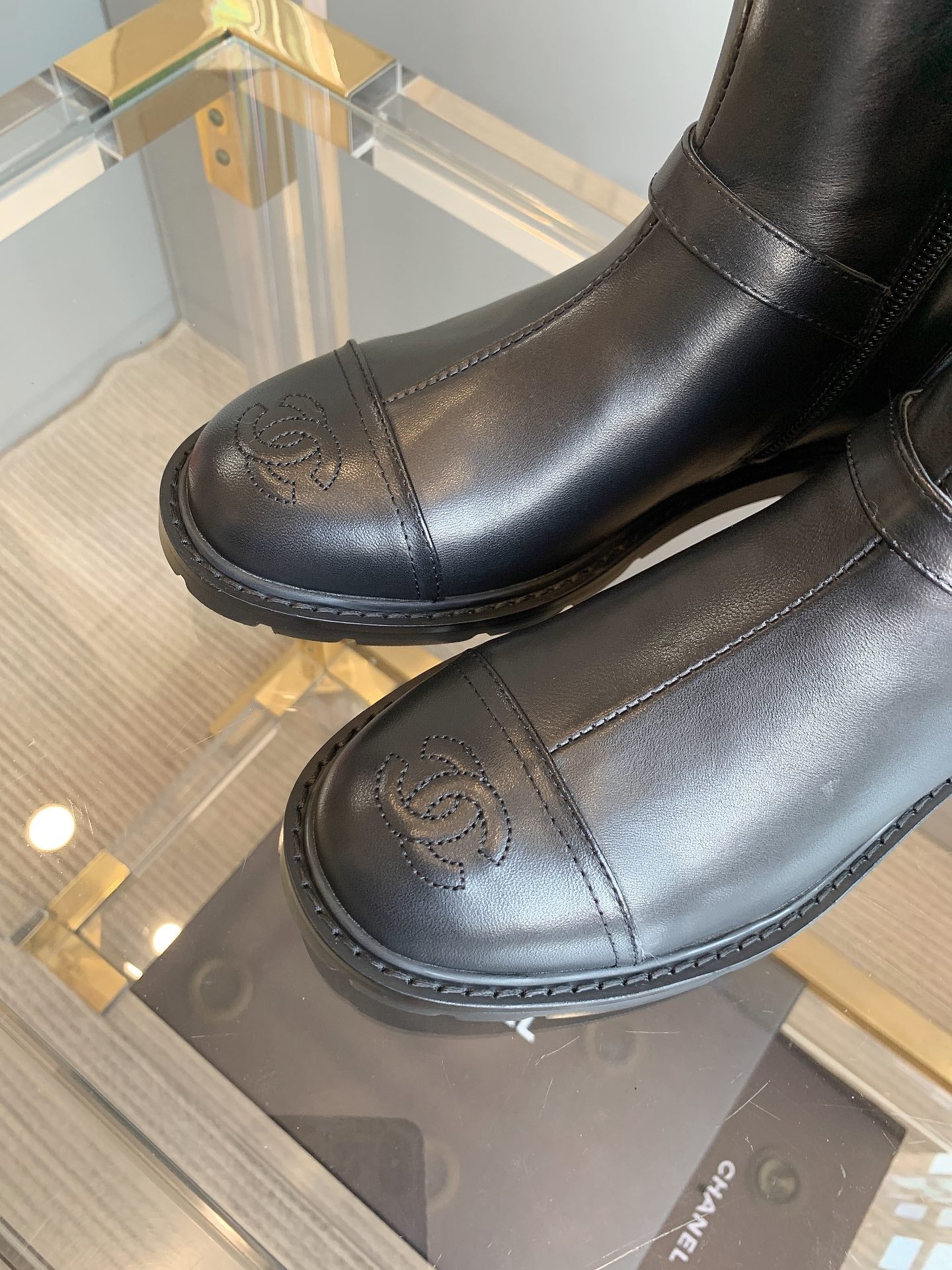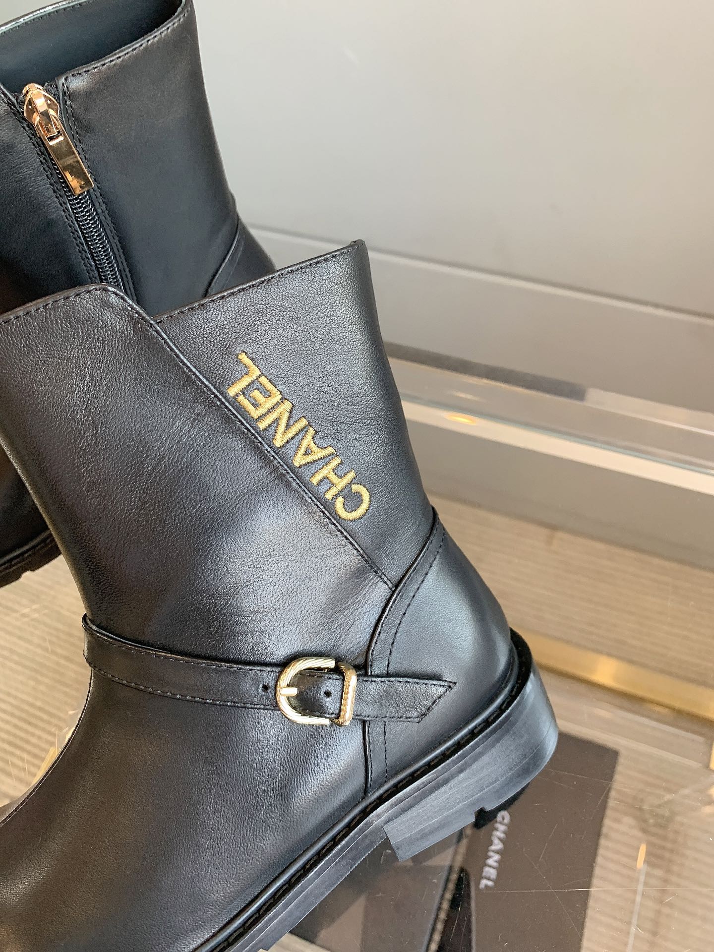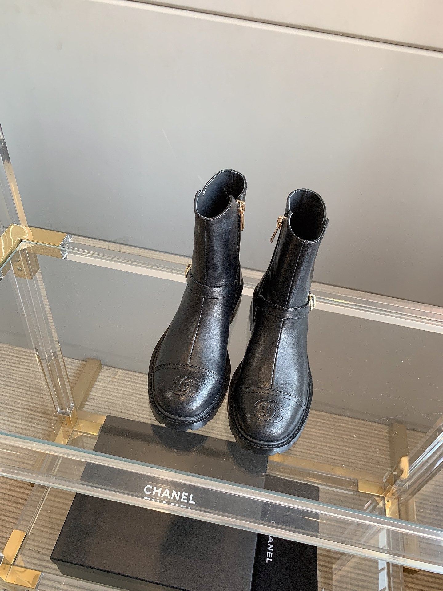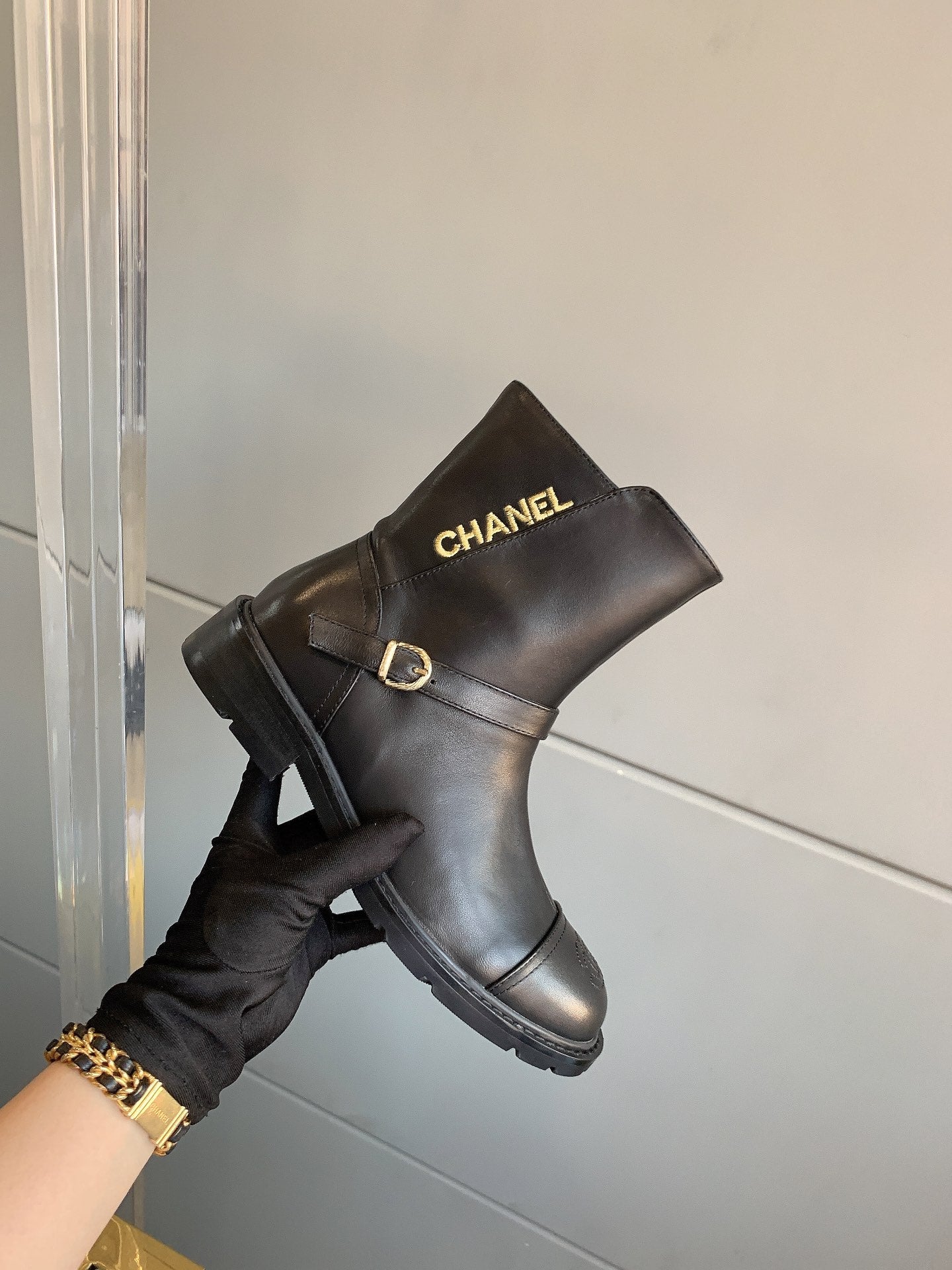 CC Front-Strap Ankle Boots 35mm Black Sheeepskin 464551
