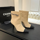 CC Gabrielle Chanel Ankle Boots 8.5cm Beige Suede Black Fabric