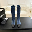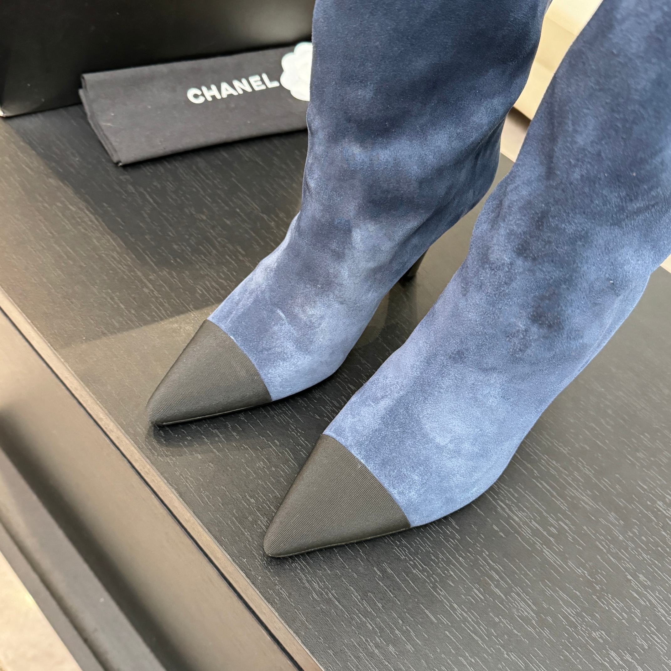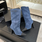 CC Gabrielle Chanel Boots 8.5cm Dark Blue Suede Black Fabric
