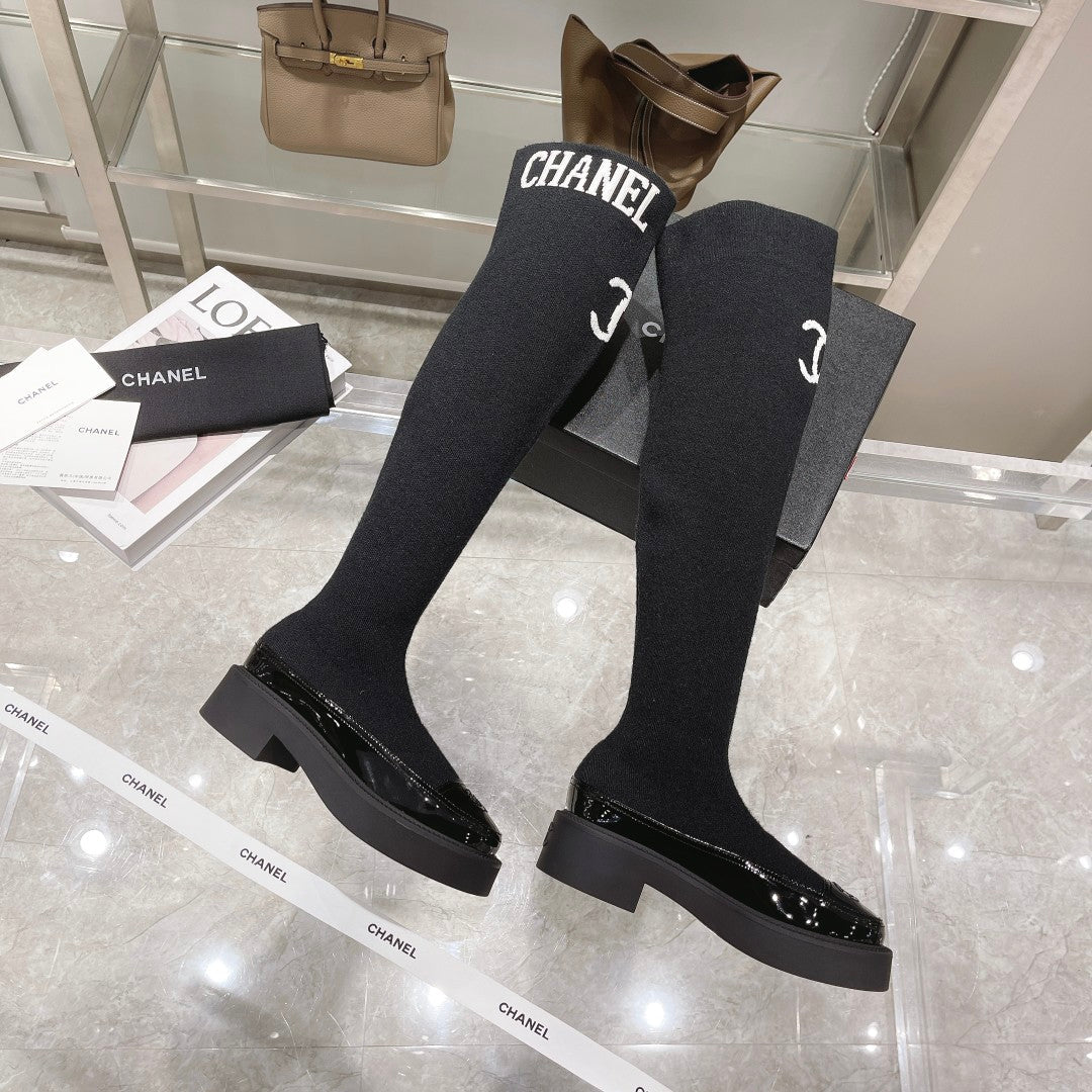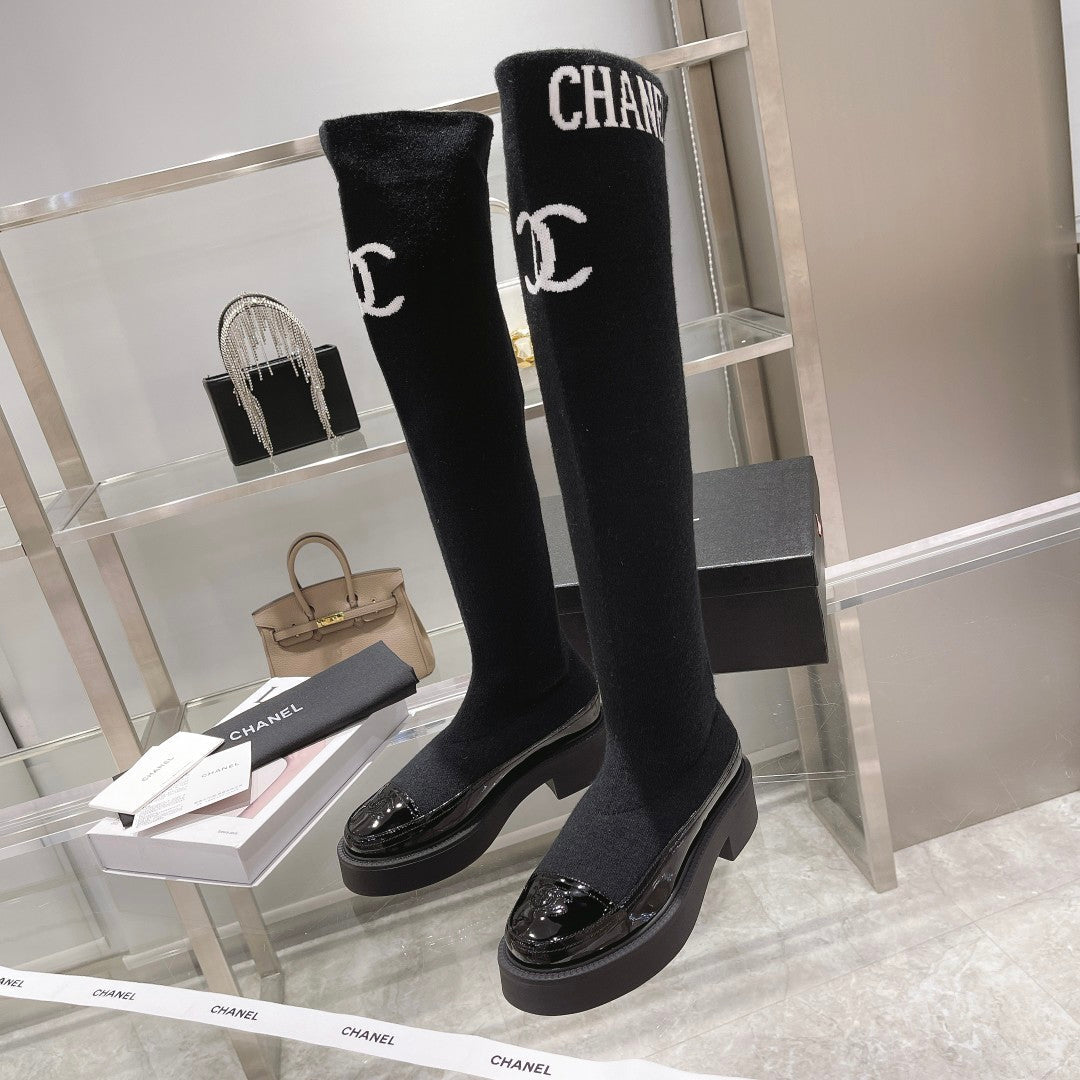 CC High Boots 45mm Black Stretch Wool And Cowhide