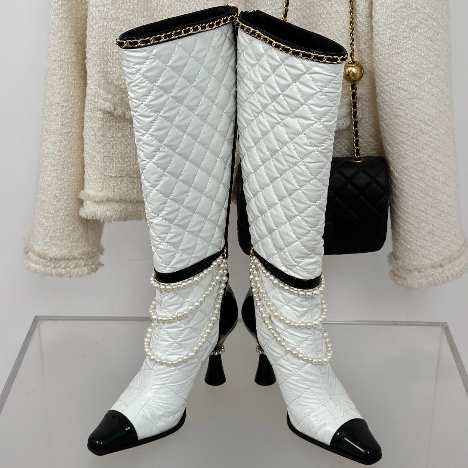 CC High Boots 80mm White Wrinkled Quilted Calfskin