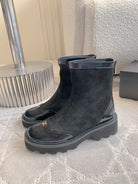 CC New Platform Ankle Boots Black Suede Glossy Sheepskin