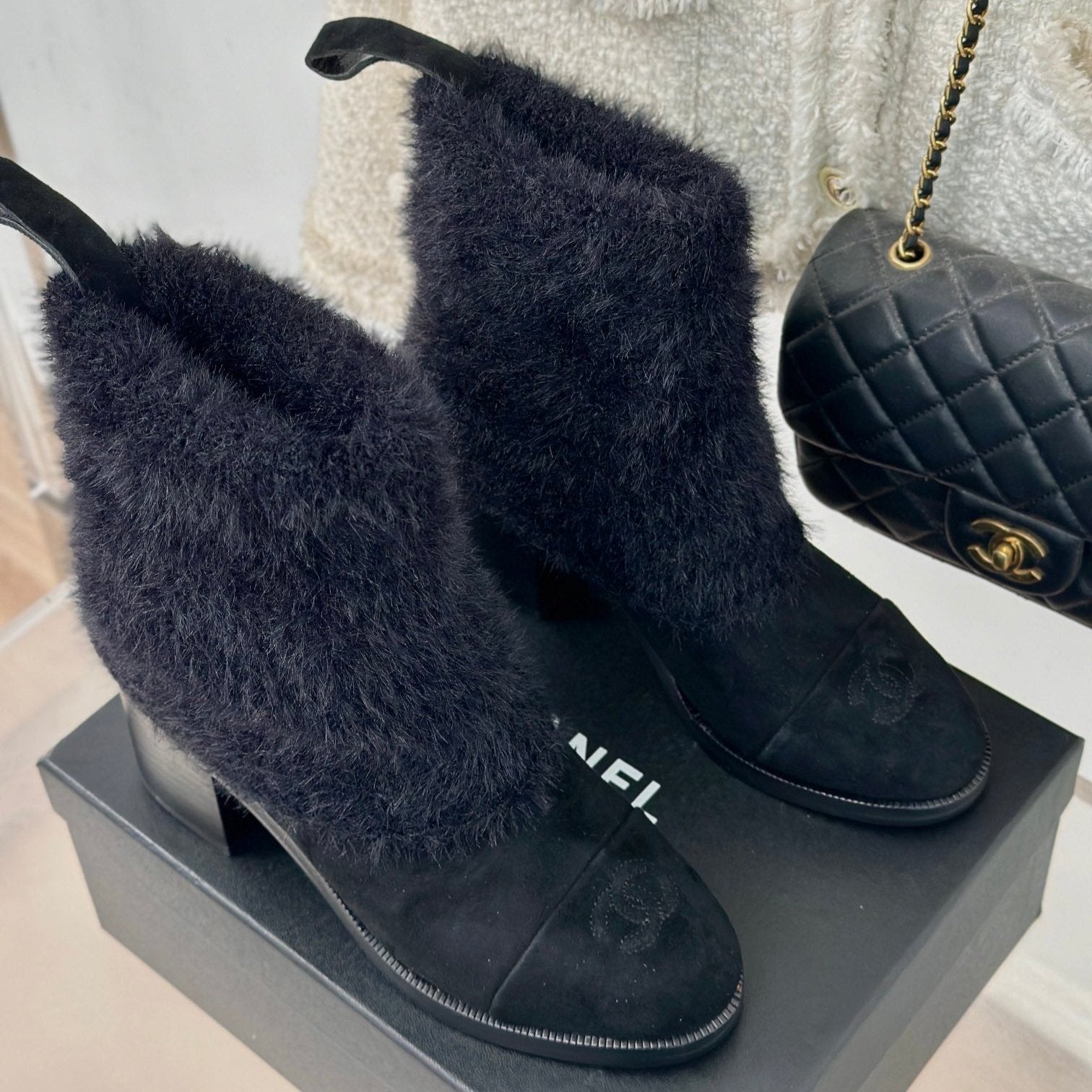 CC Short Boots 60mm Black Suede And Wool Yarn