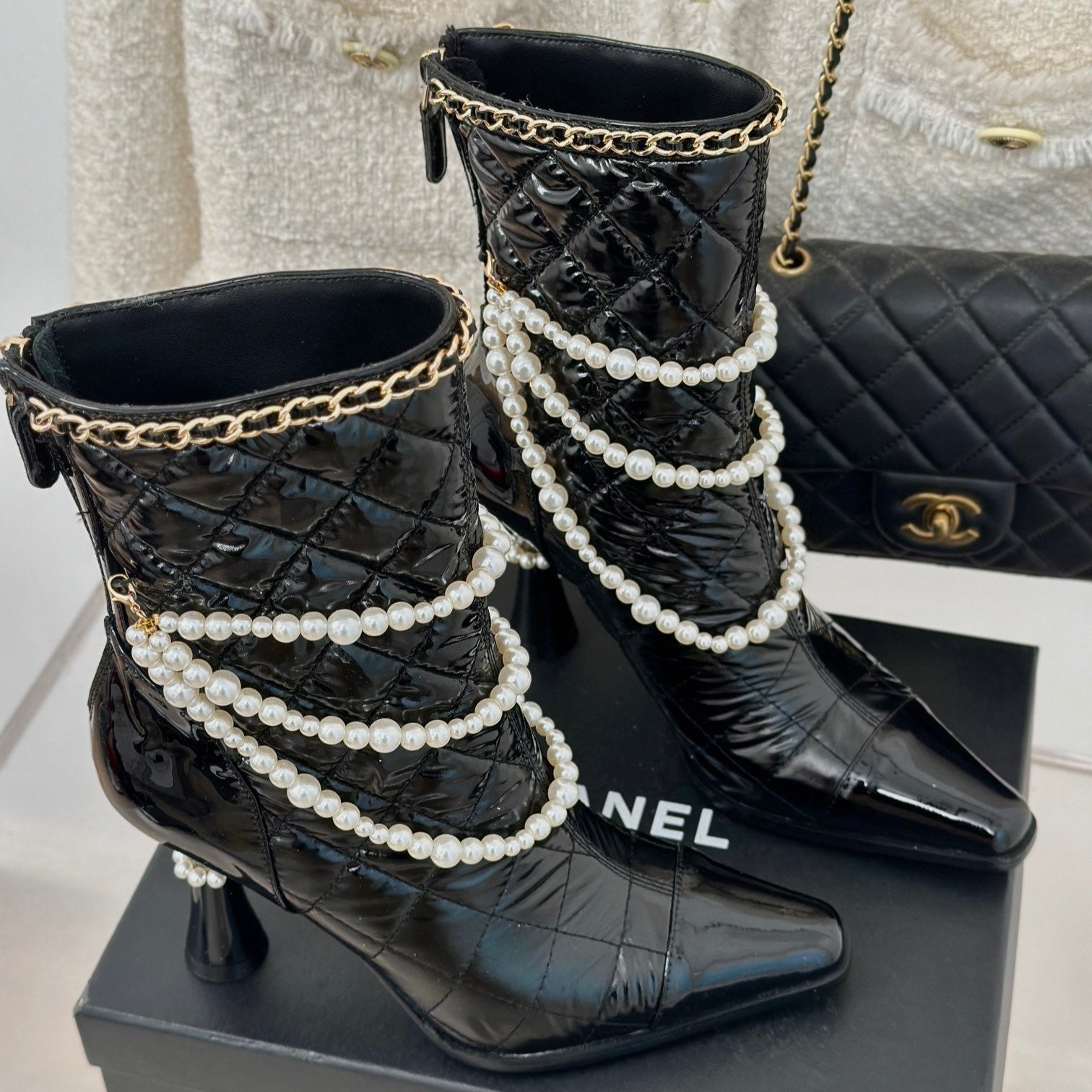 CC Short Boots 80mm Glossy Black Wrinkled Quilted Calfskin