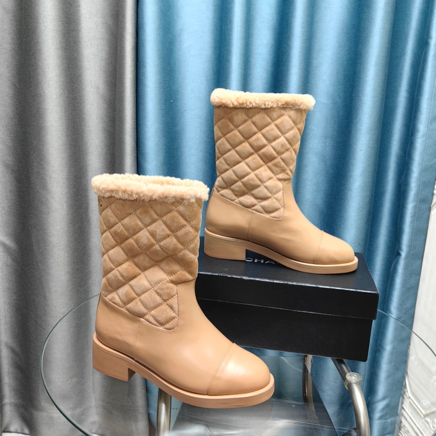 CC Short Boots Beige Suede Lining Wool And Lambskin
