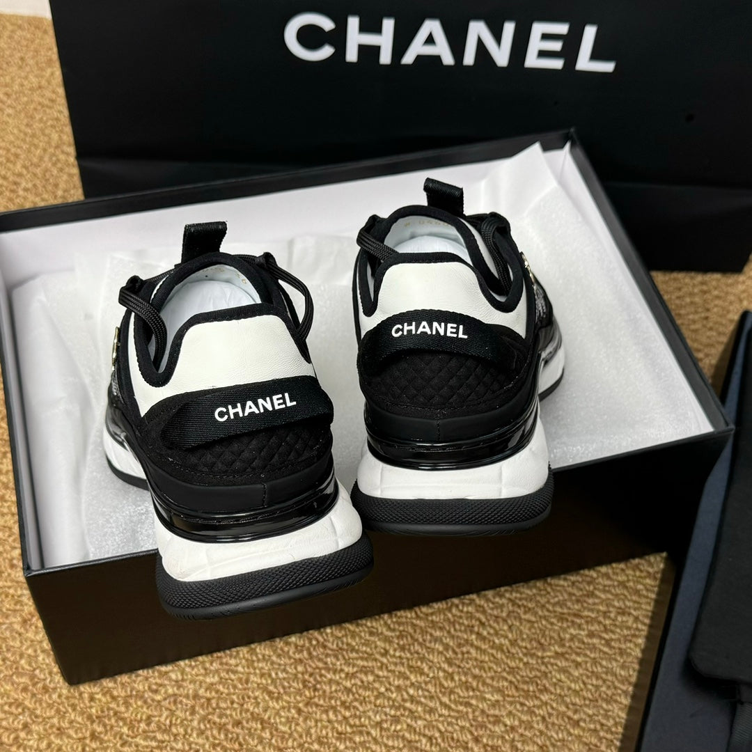 CC Sneaker Black Mix White Calfskin And Silk Parachute Fabric 947509