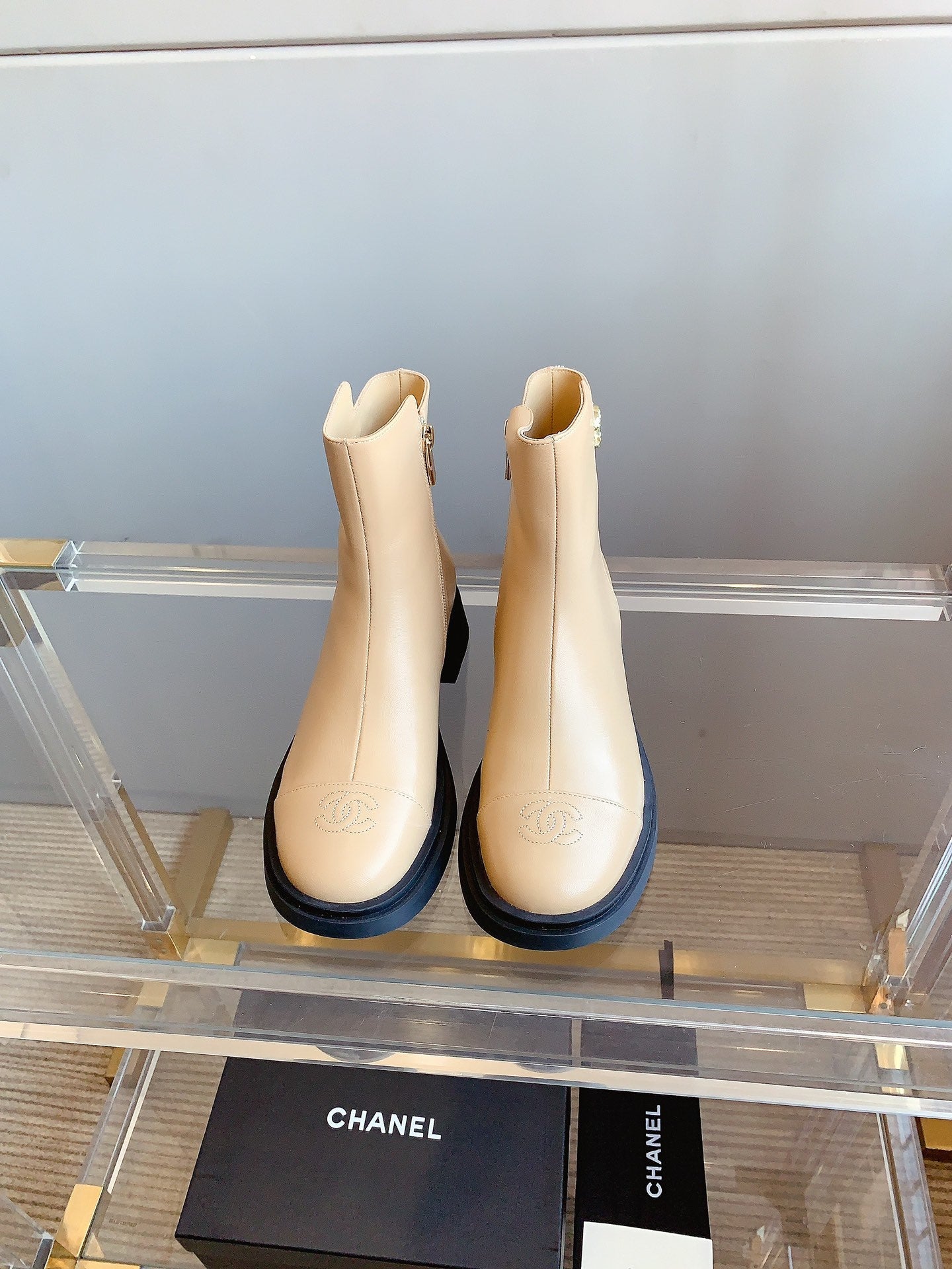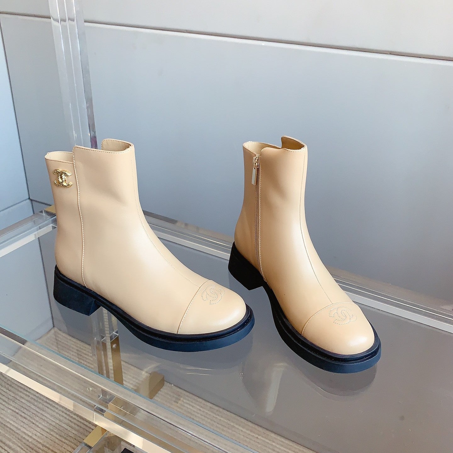 CC Zipper Ankle Boots 35mm Beige Sheeepskin 464549