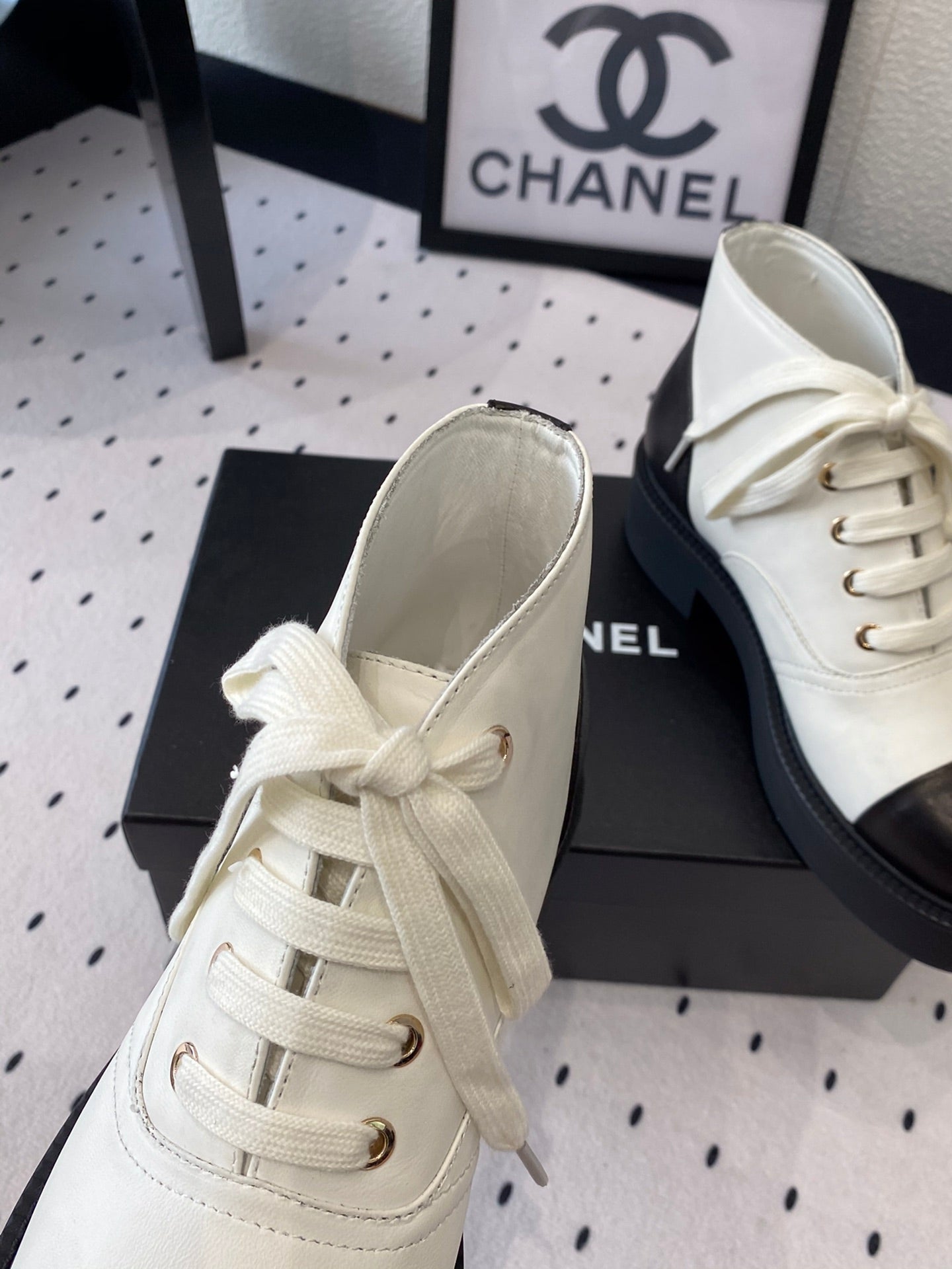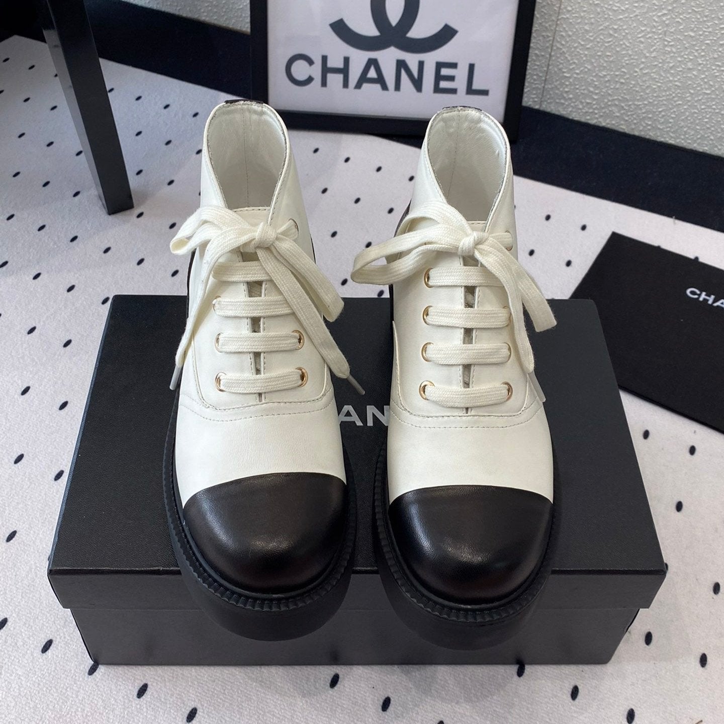 LOW-CUT BOOTS IN BLACK MIX WHITE CALFSKIN