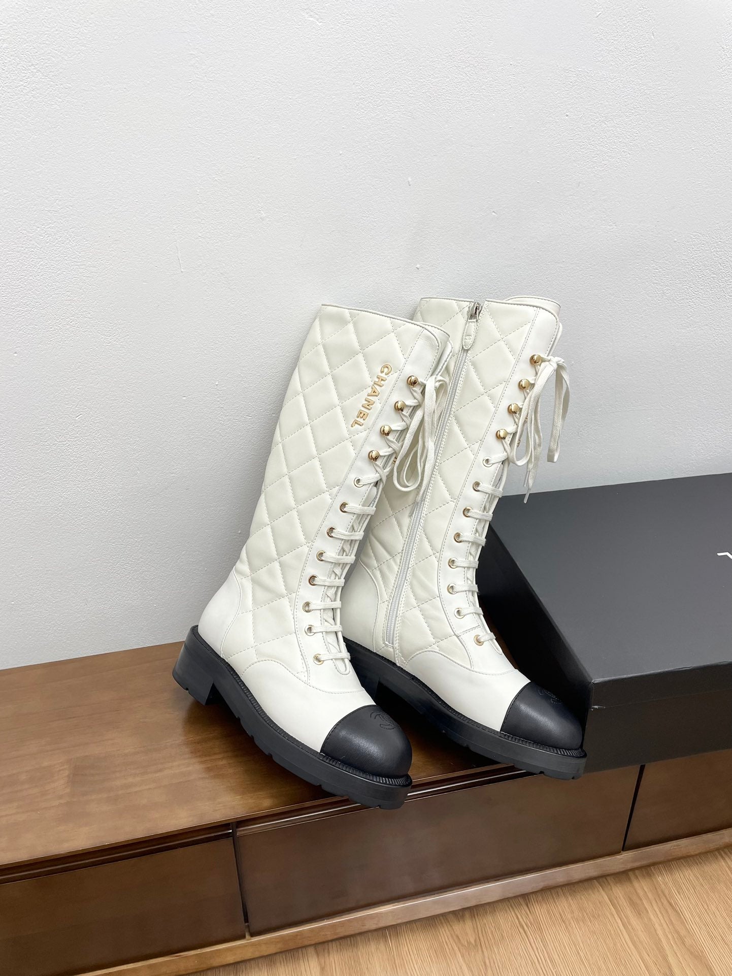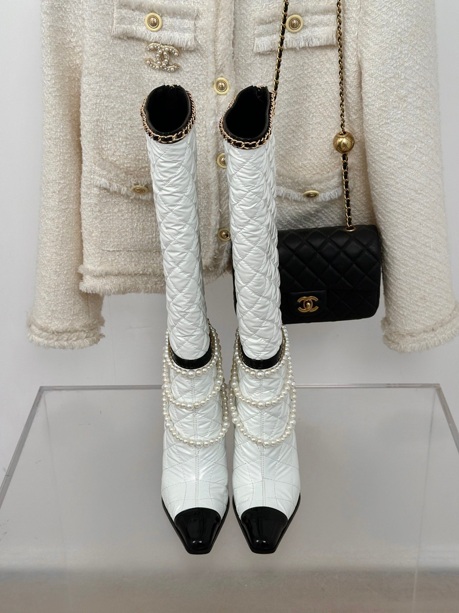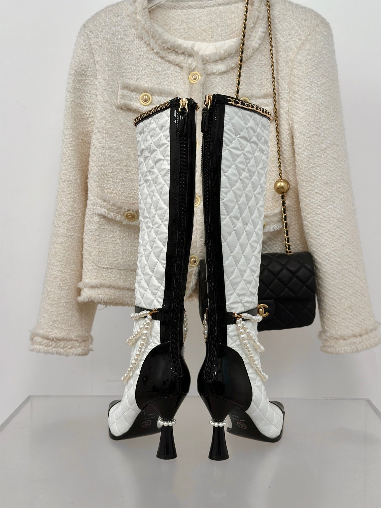 CC High Boots 45mm White Mix Black Quilted Cowhide
