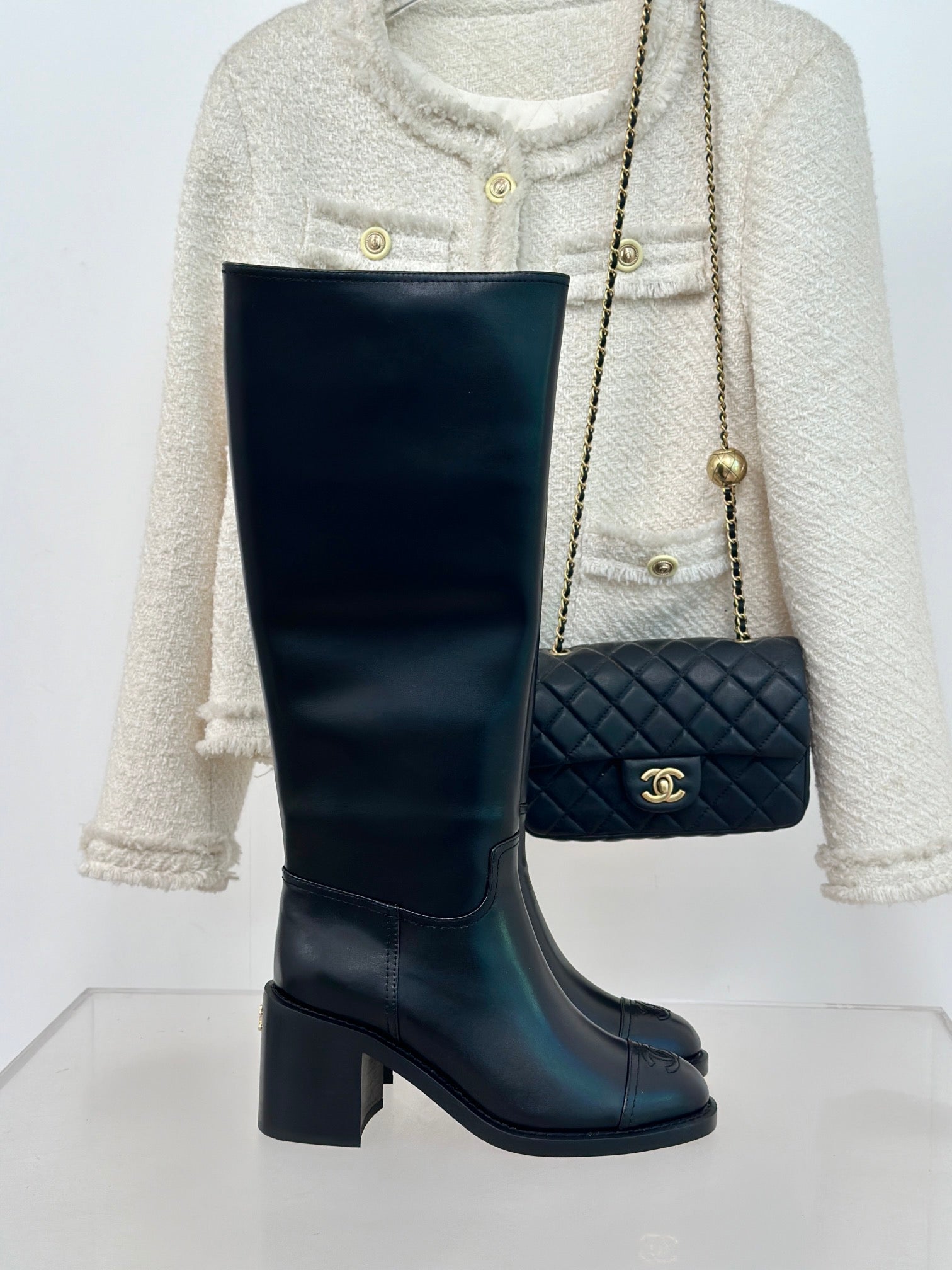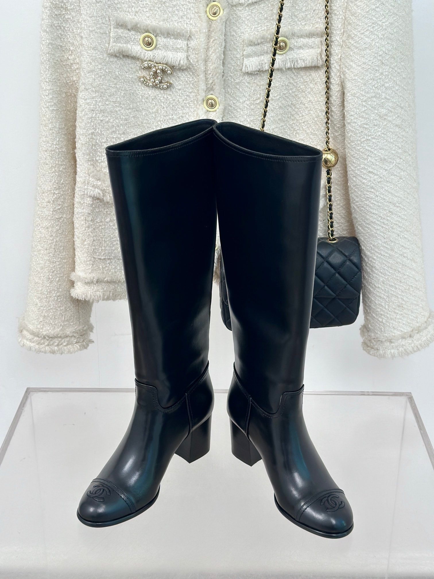 CC High Boots Black Calfskin
