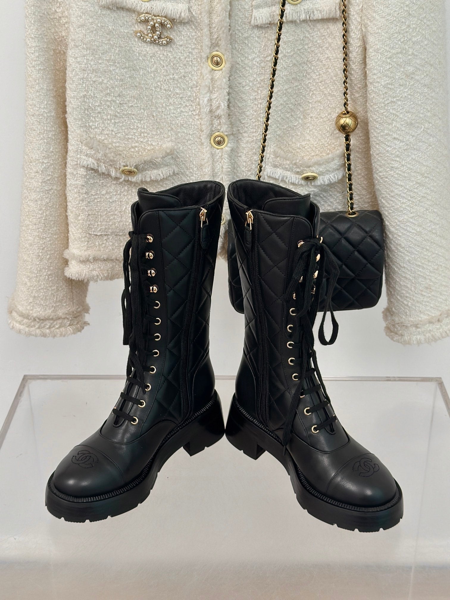 CC High Boots Black Quilted Cowhide