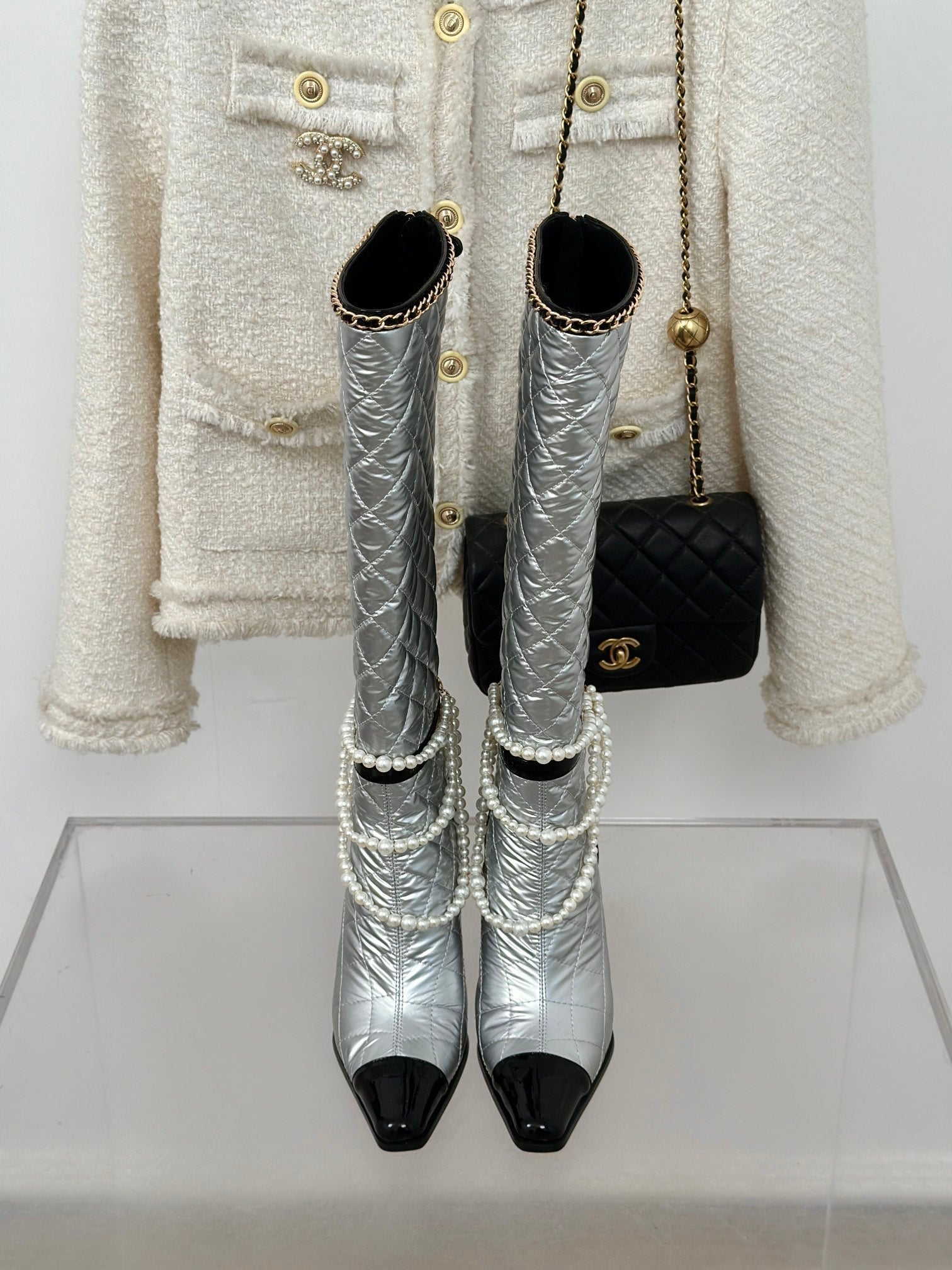 CC High Boots Silver Quilted Cowhide