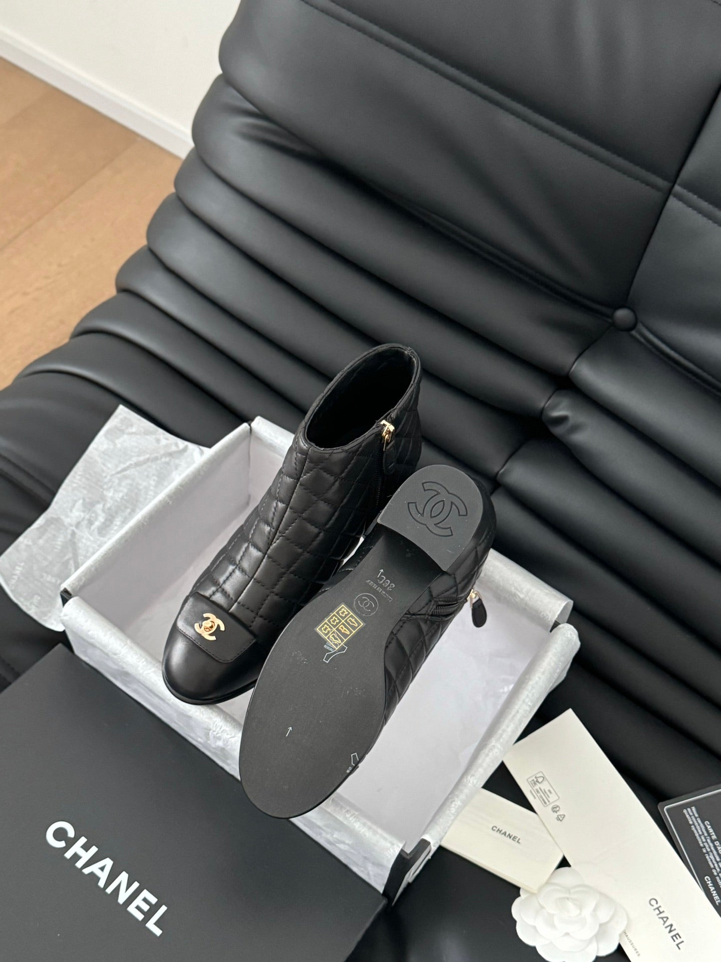 CC SHORT BOOTS 65 MM IN BLACK QUILTED PATTERN LAMBSKIN