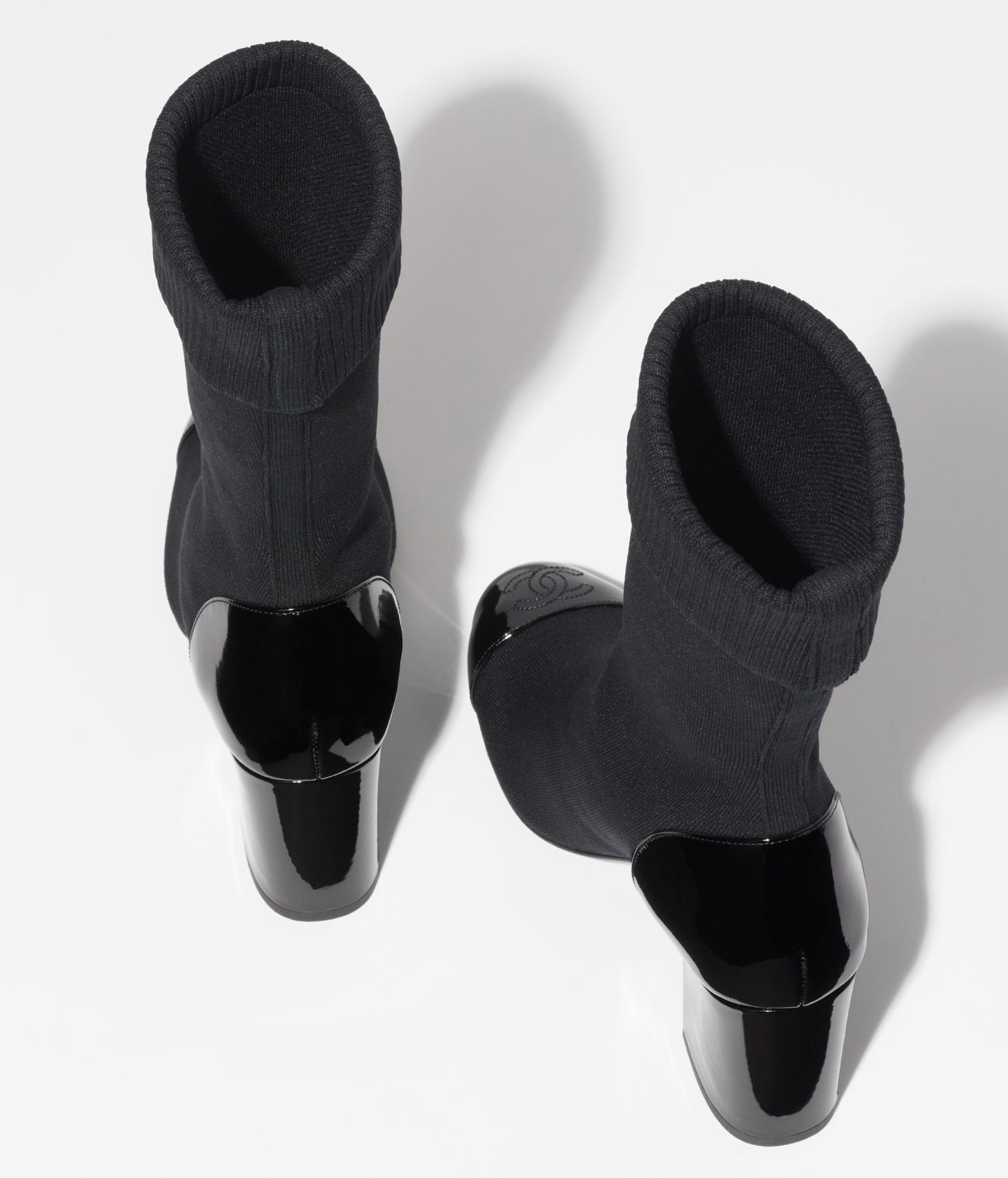 CC LOW CUT BOOTS IN BLACK STRETCH LAMBSKIN AND GROSGRAIN WITH PEARL CHAIN