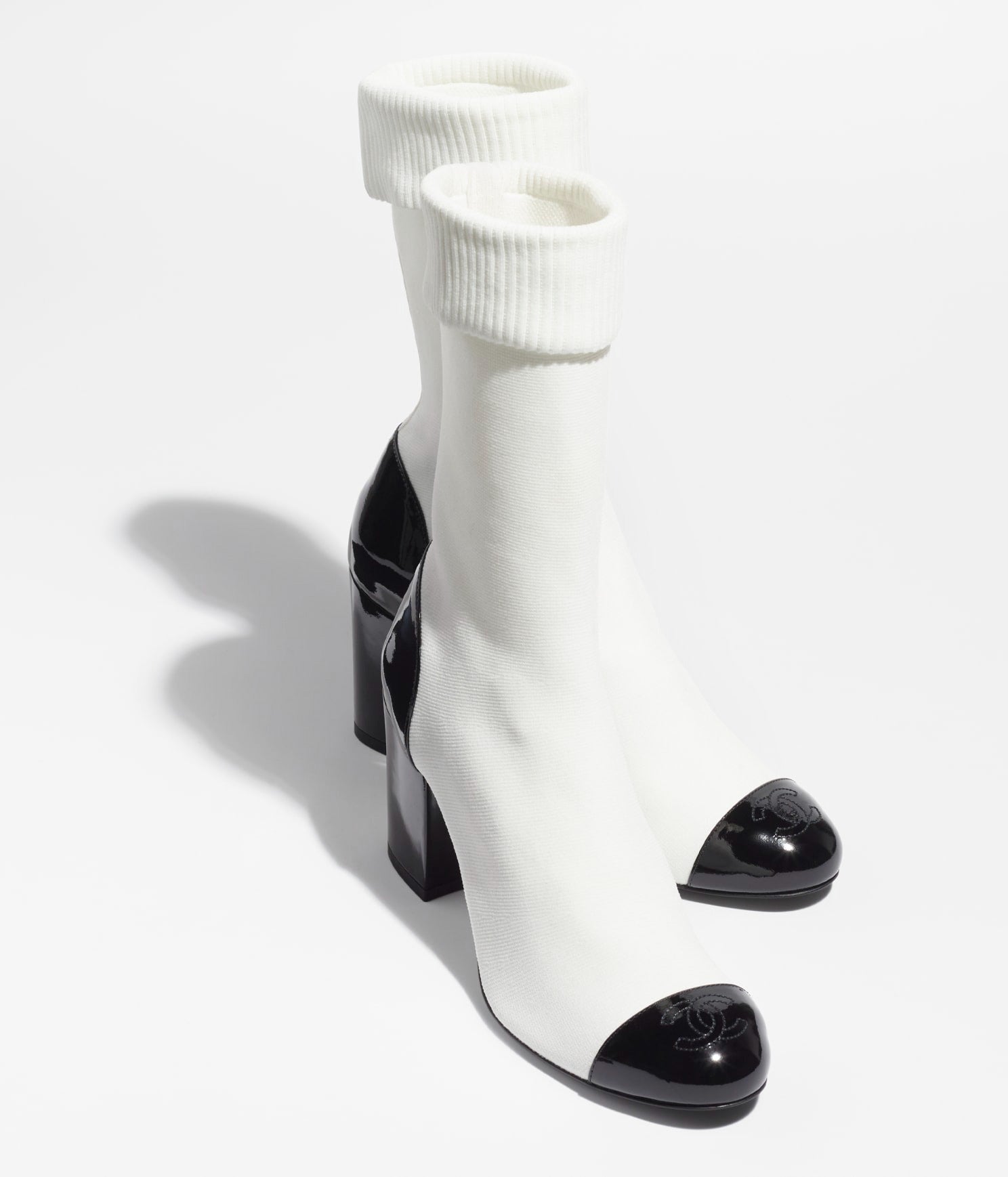 CC SHORT BOOTS 65 MM IN WHITE MIX BLACK QUILTED PATTERN LAMBSKIN