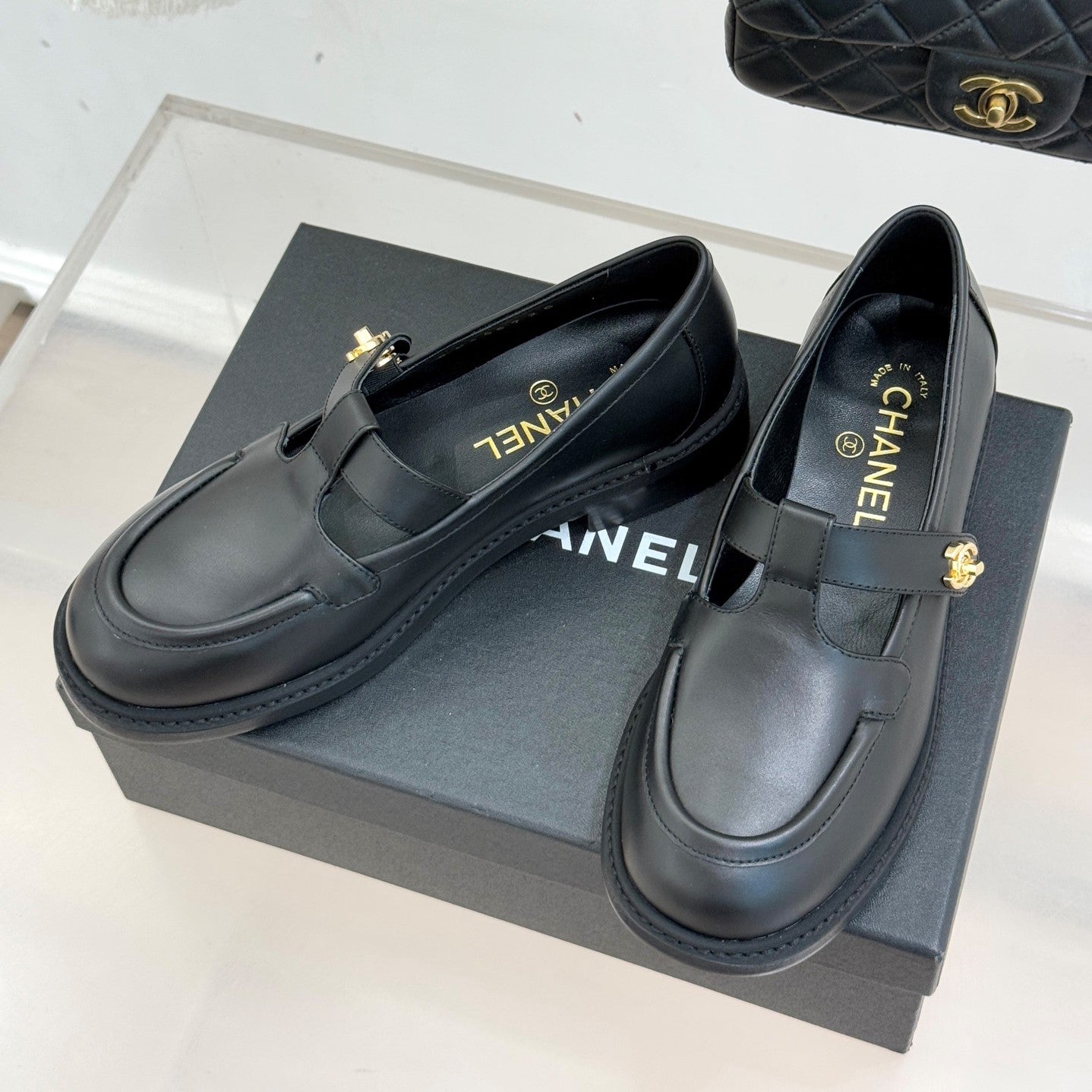 CCMary Jane Loafers CC Logo Buckle Black Cowhide 512060