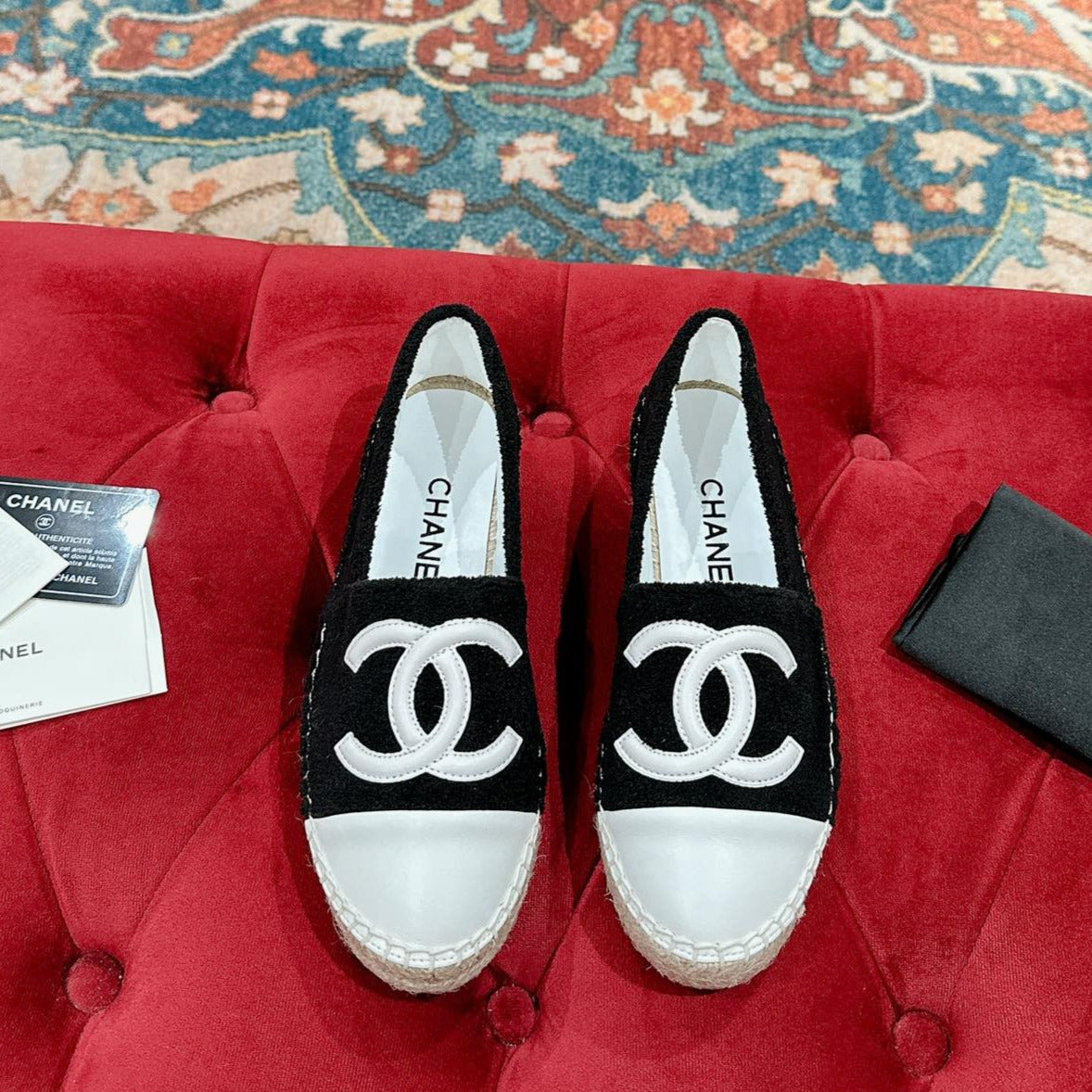 cc espadrilles black fleece fabric white calfskin
