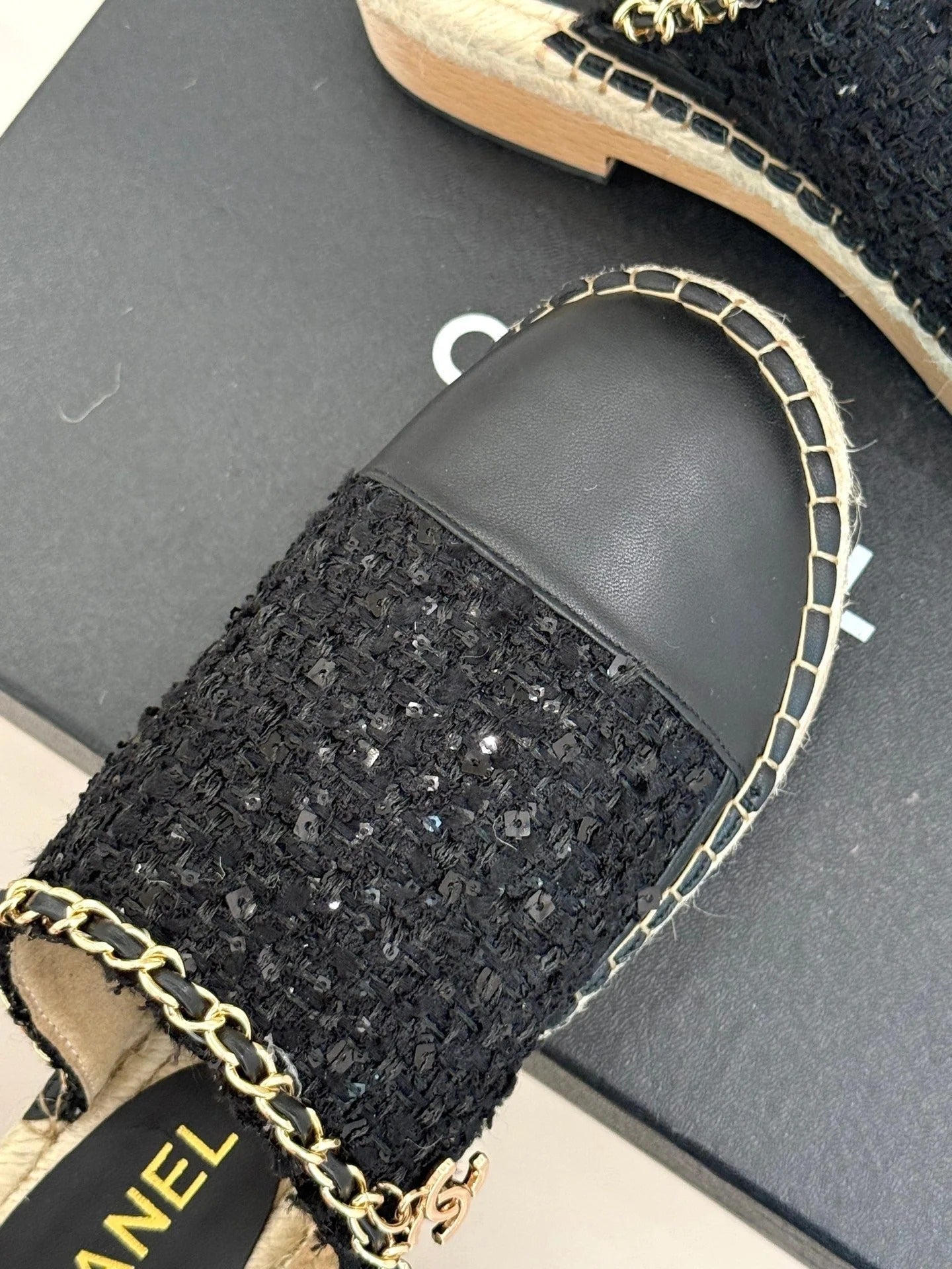 CC Mules 25ss 30 Mm In Black Lambskin Mix Tweed