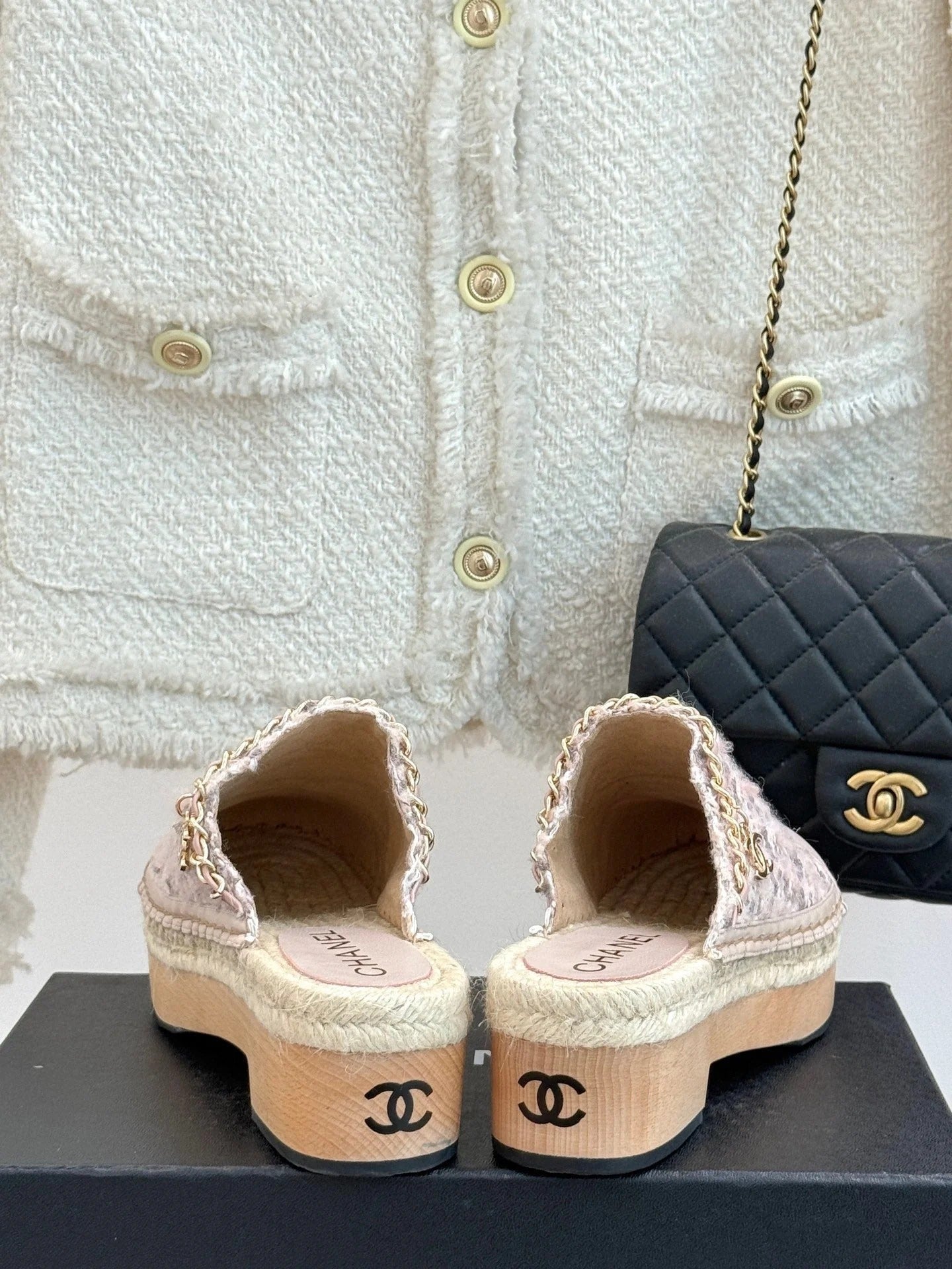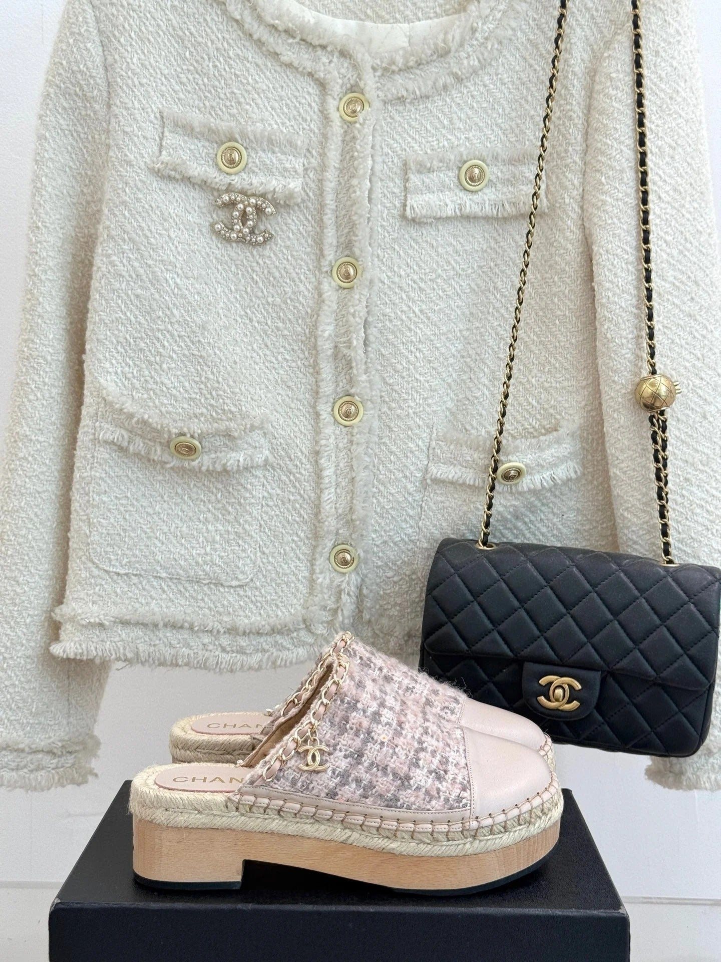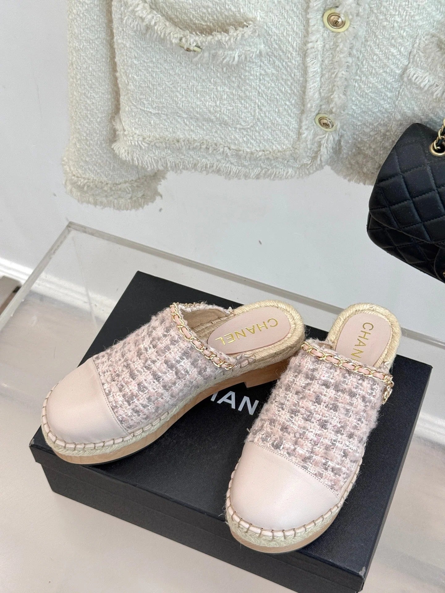 CC Mules 25ss 30 Mm In Pastel Pink Lambskin Mix Tweed
