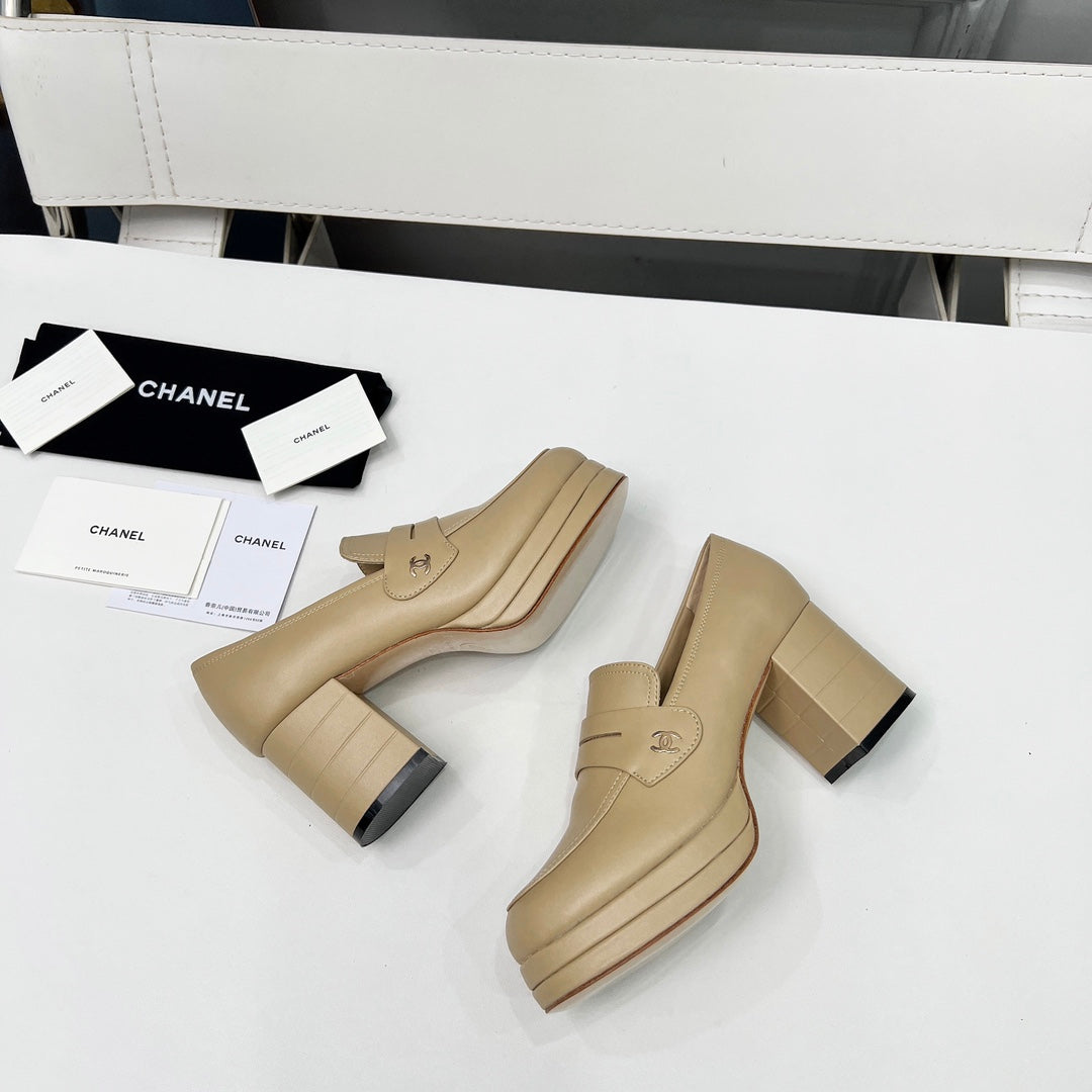 CC Platform Loafers 70mm Light Beige Sheepskin 459435