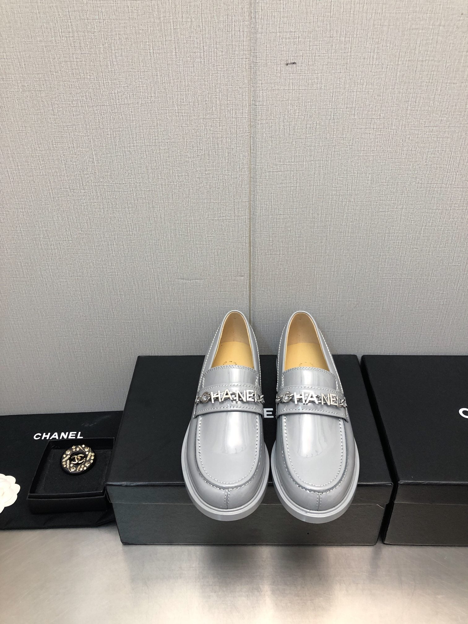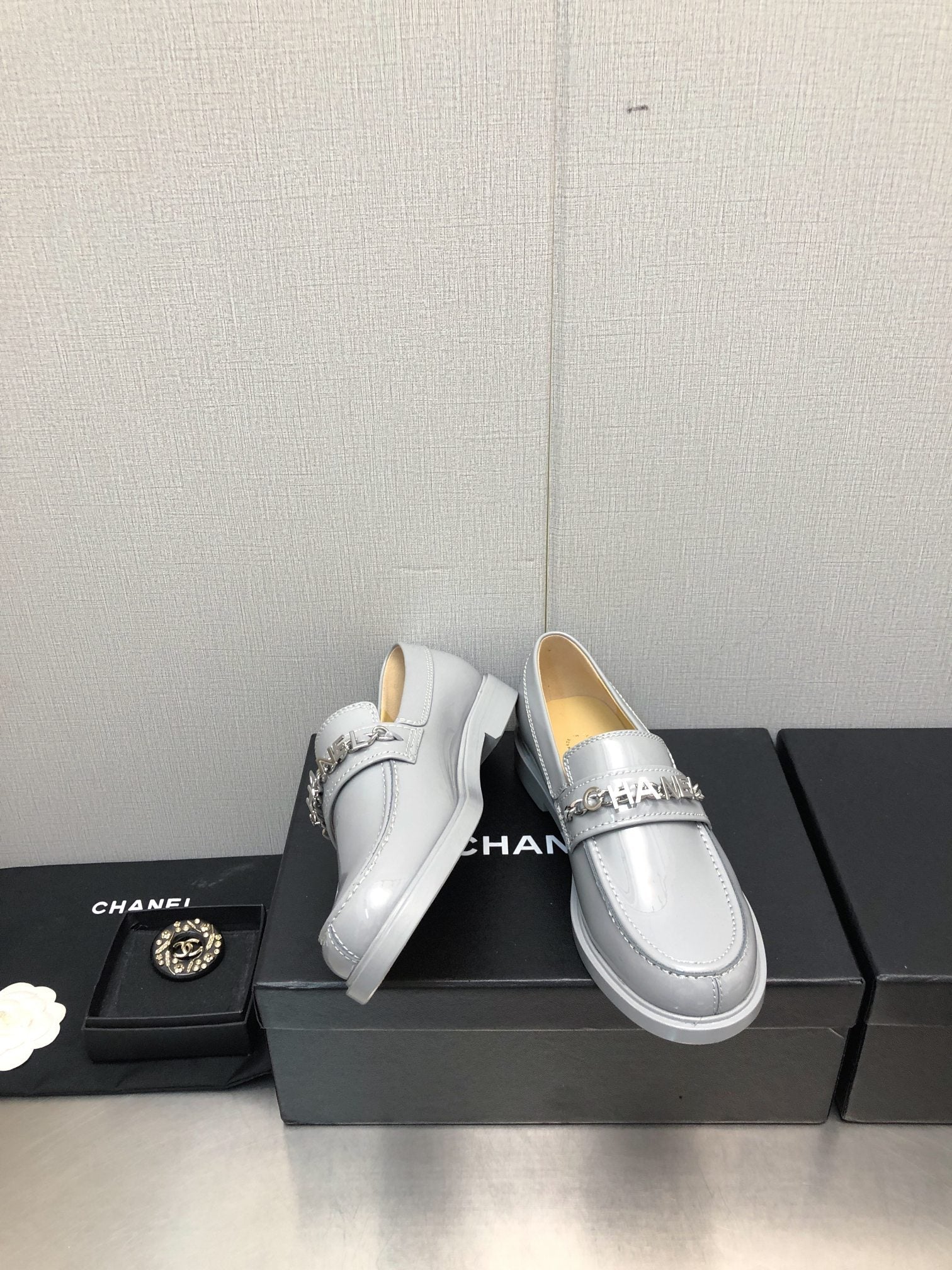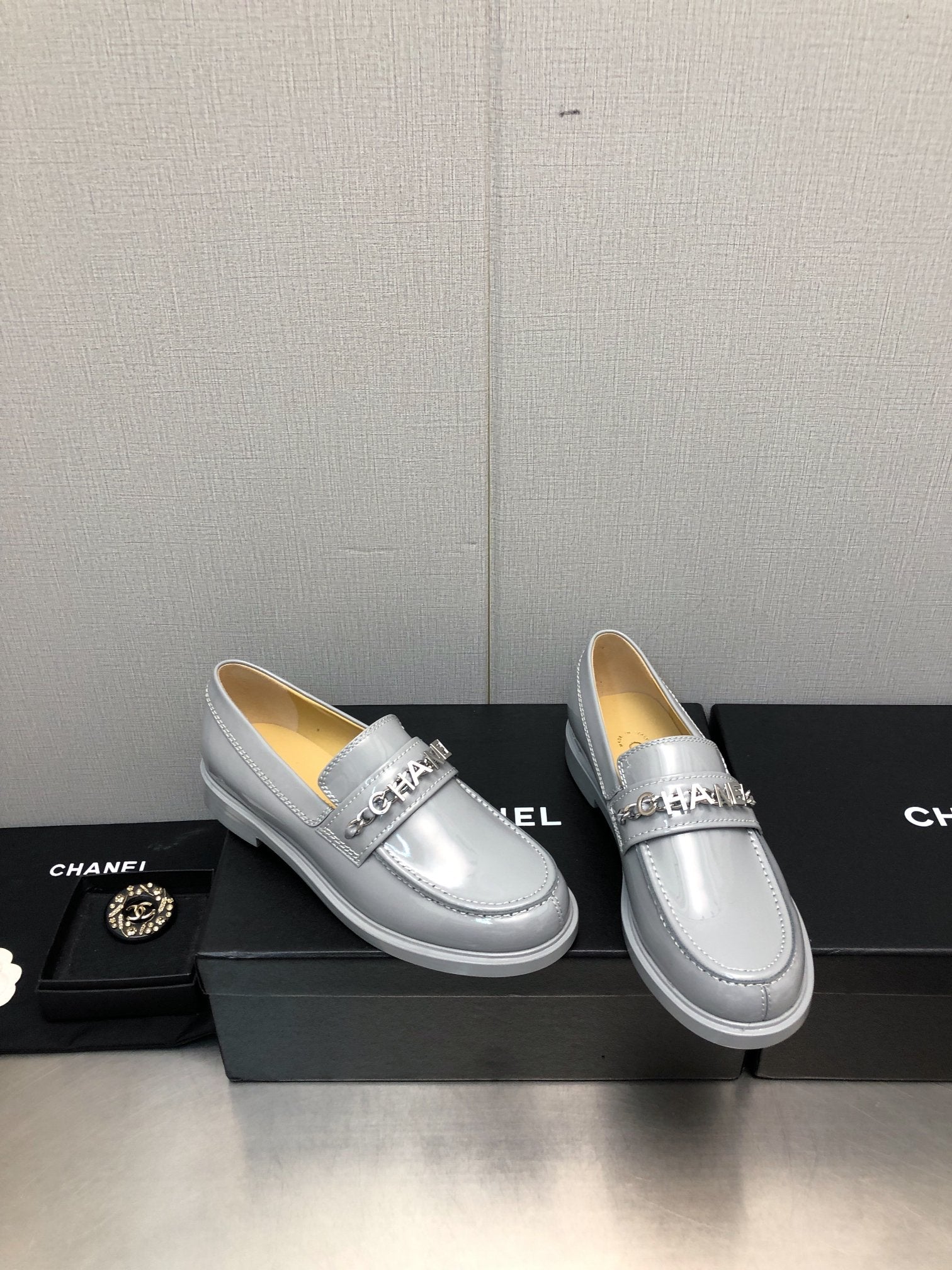 CC Moccasins 25mm In Grey Glossy Lambskin 144641