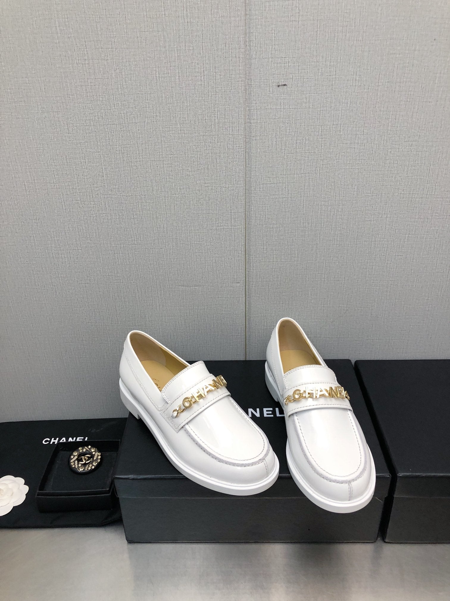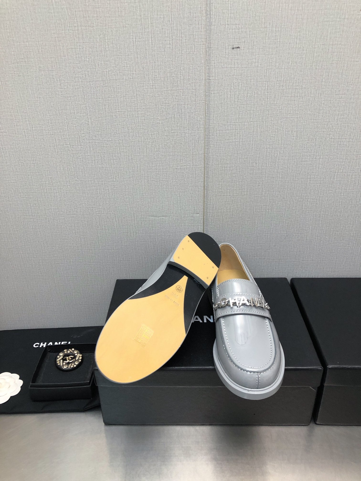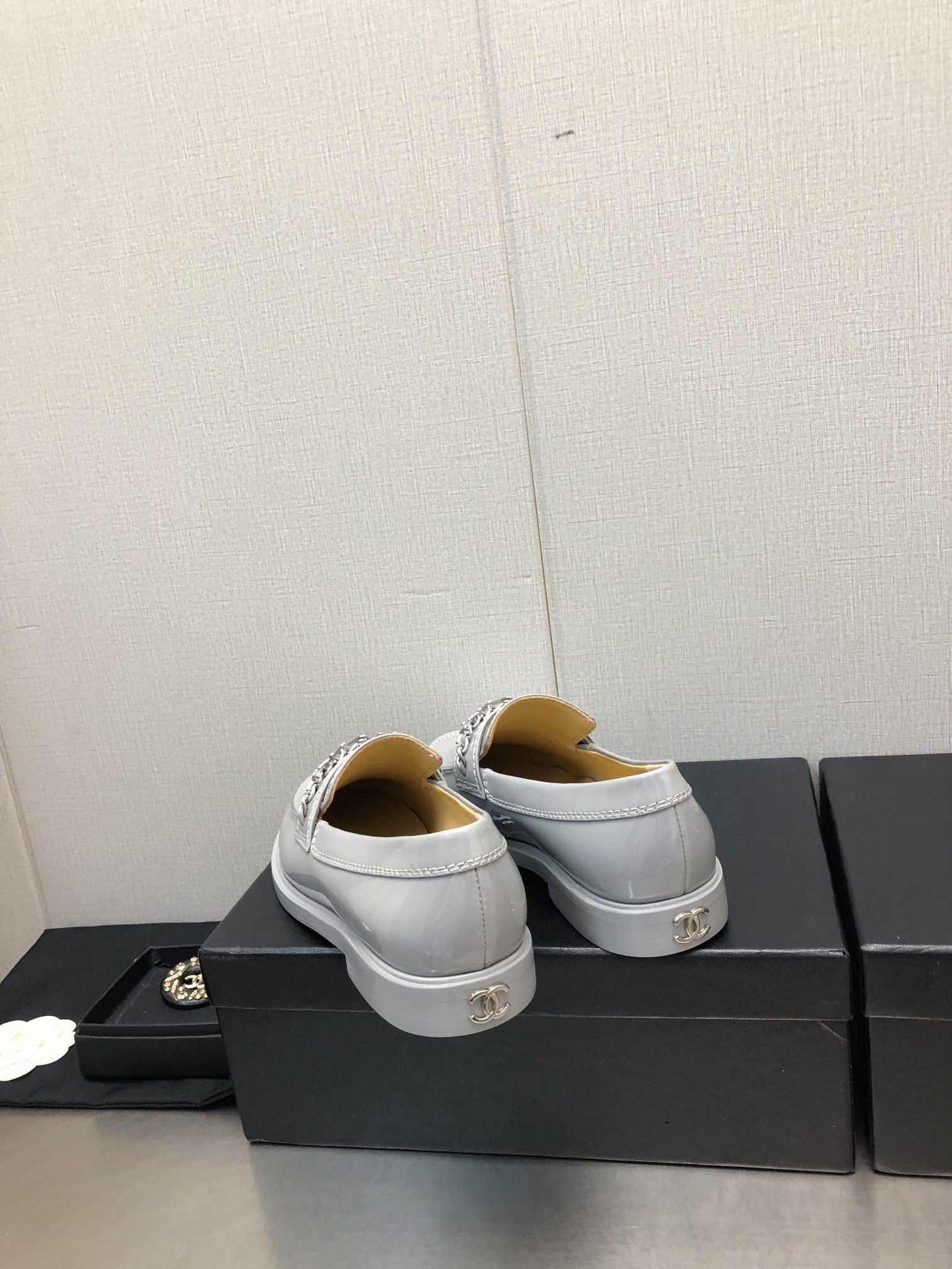 CC Moccasins 25mm In Grey Glossy Lambskin 144641