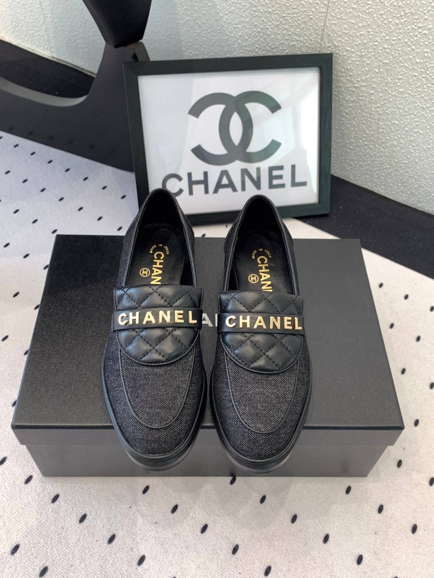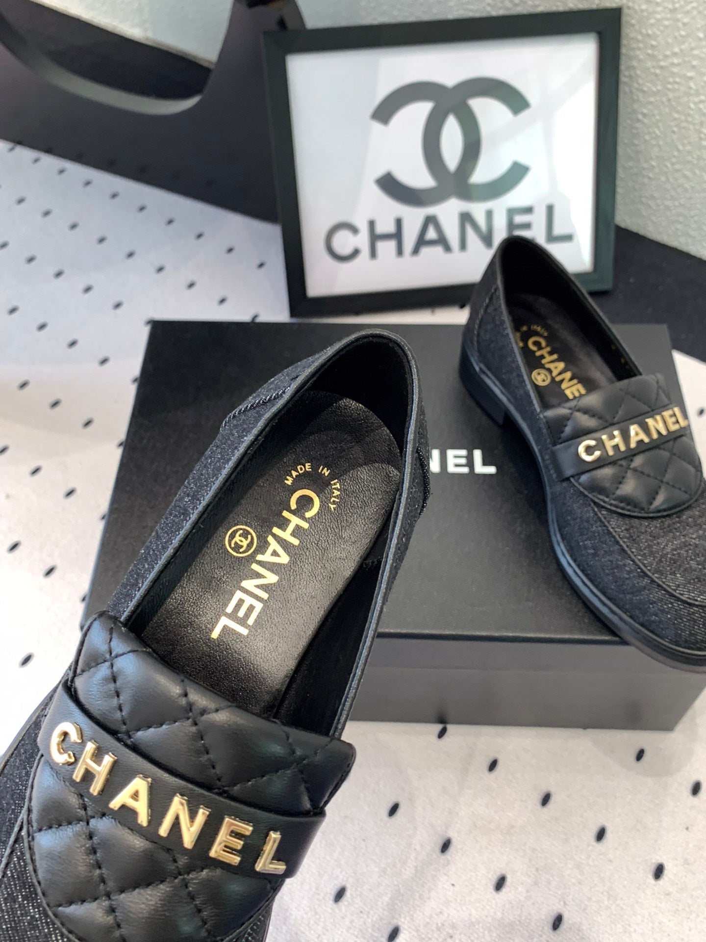 CC Moccasins In Black Denim Fabric 147020