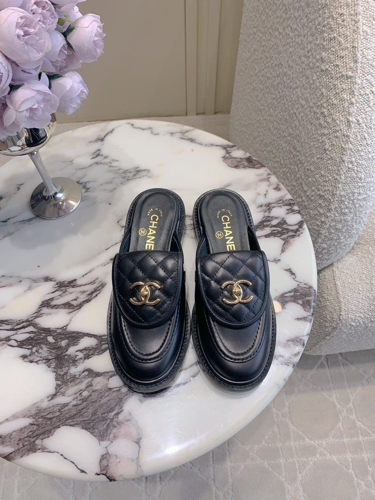 CC Moccasins 55mm In Black Lambskin With Chain 144479
