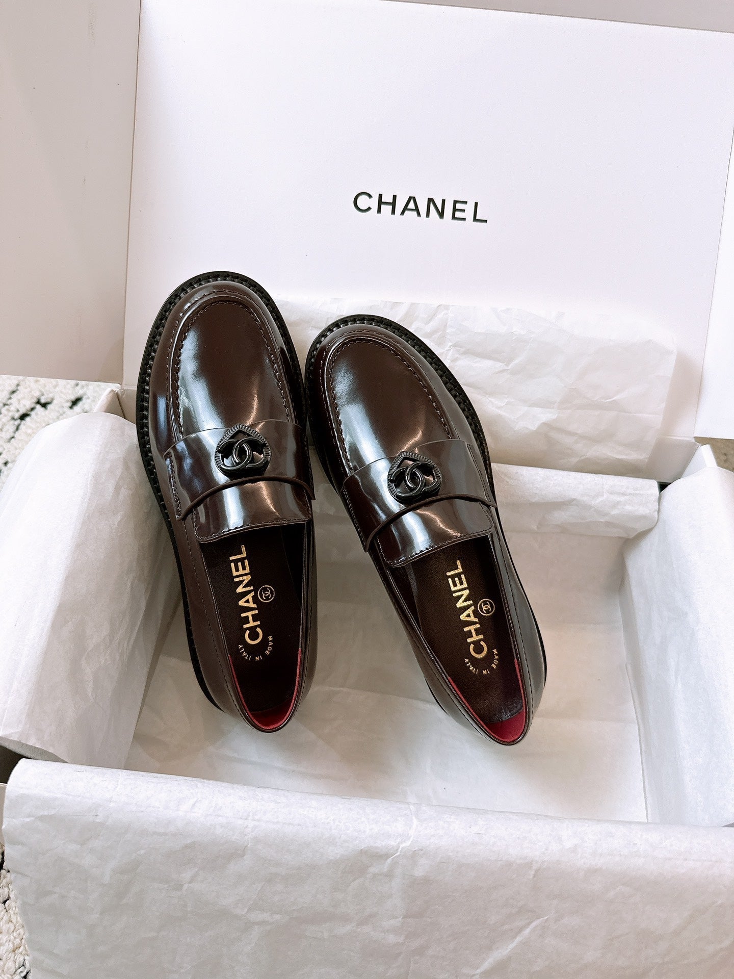 CC Moccasins 25mm In Brown Red Glossy Lambskin 144645