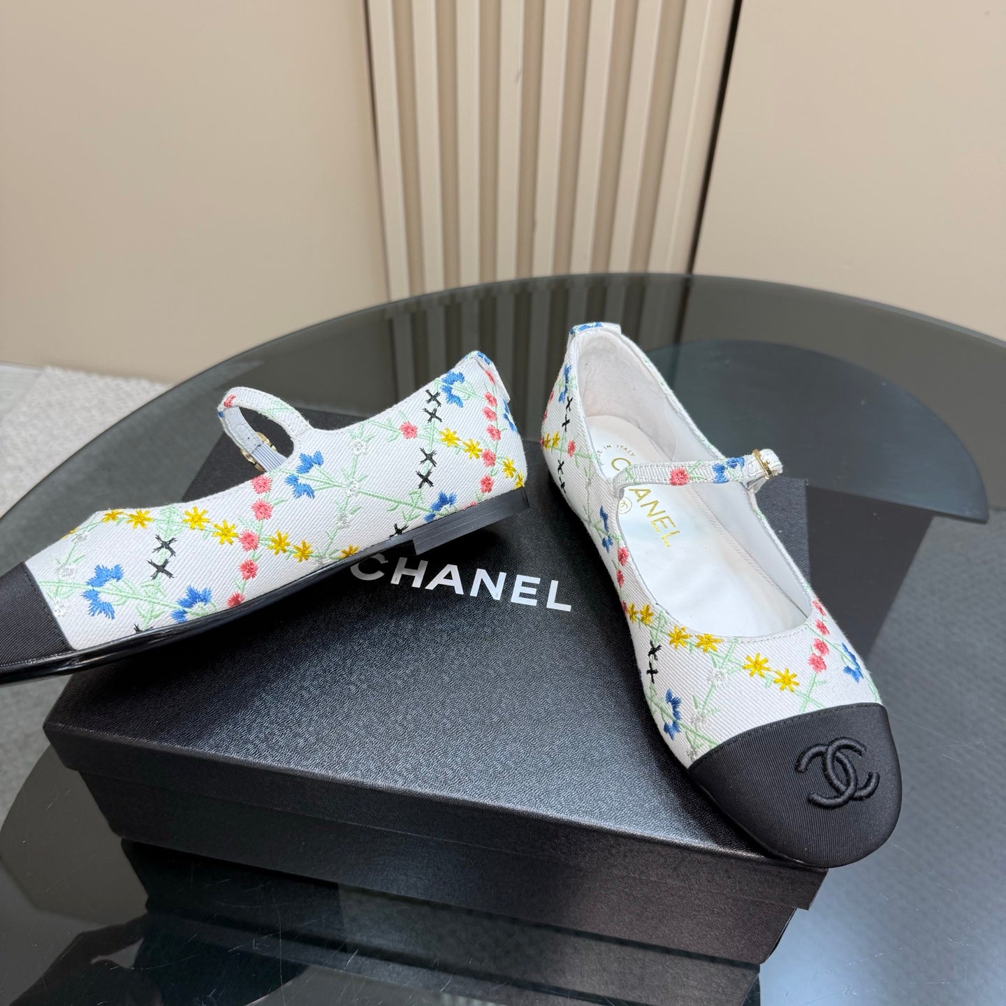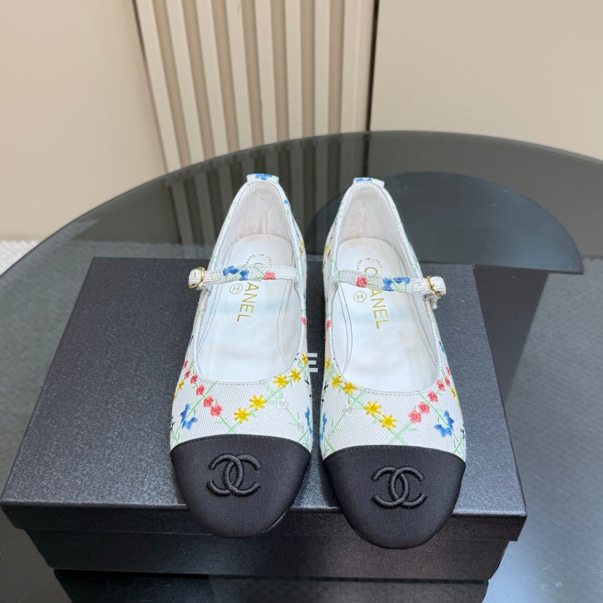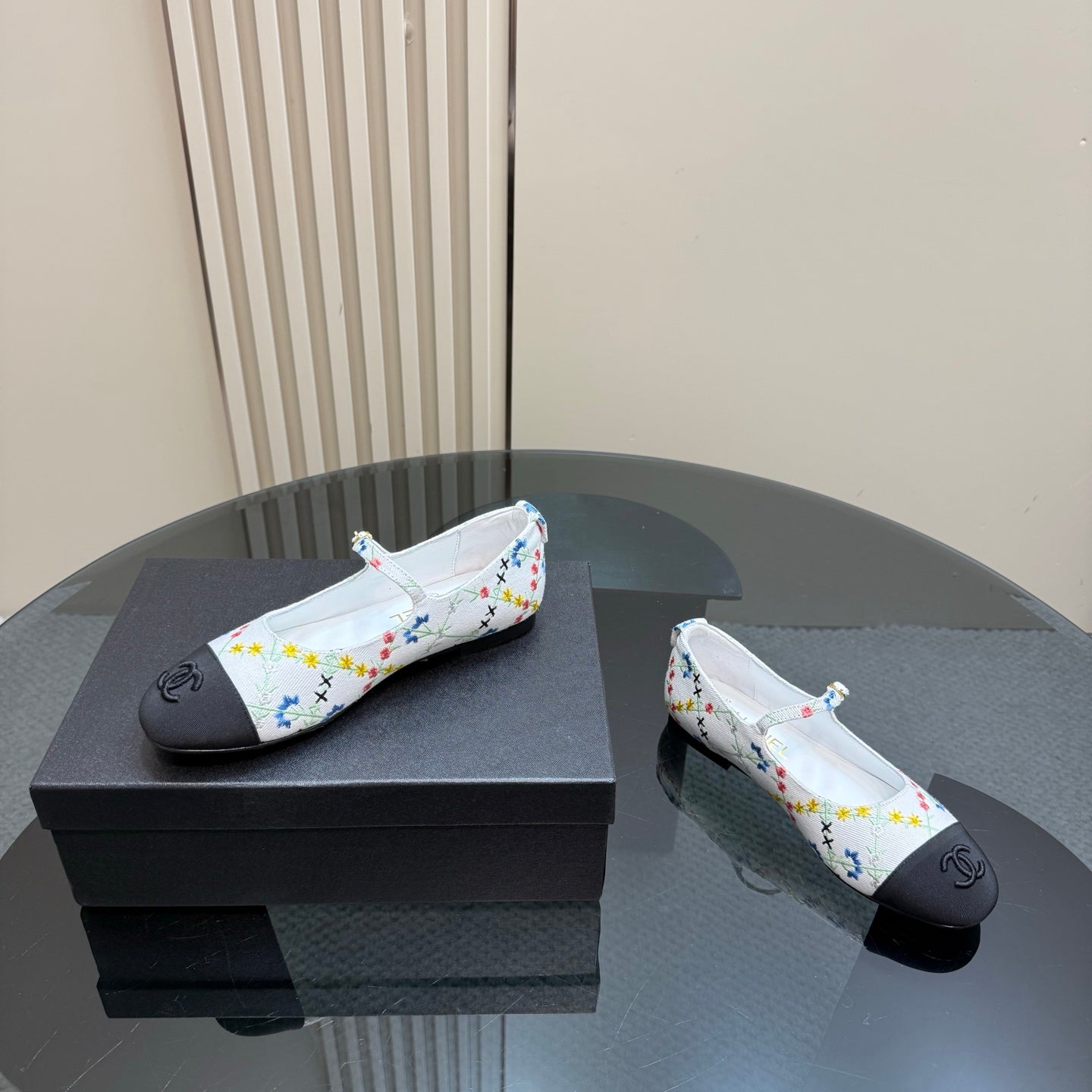 CC 25 Mary Jane Flats White Pattern Fabric 239405
