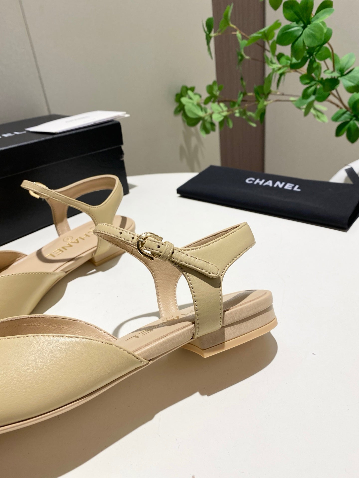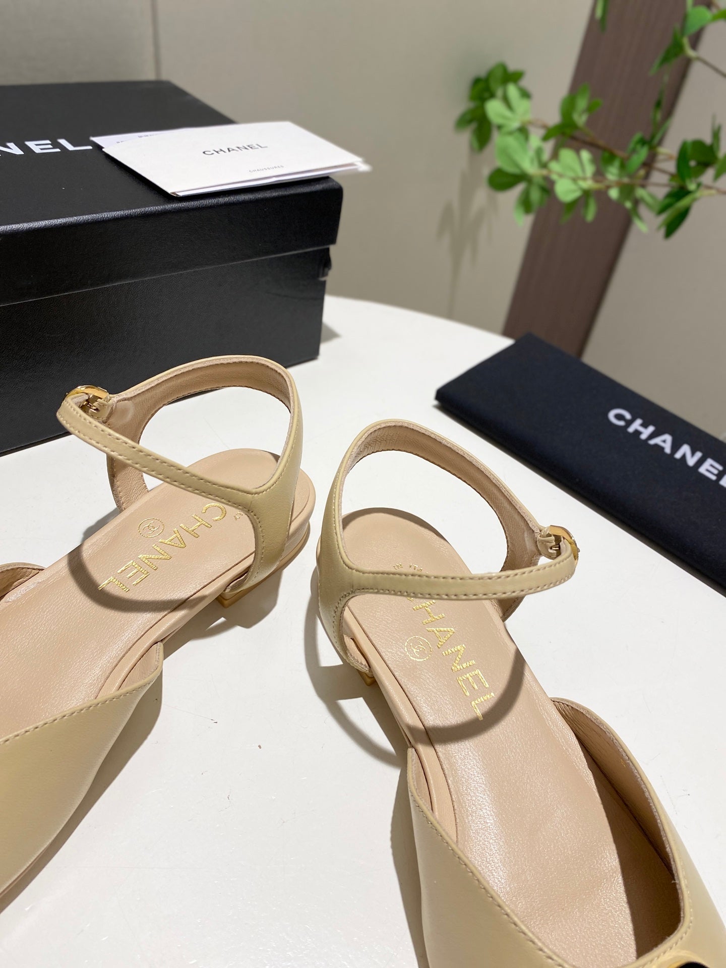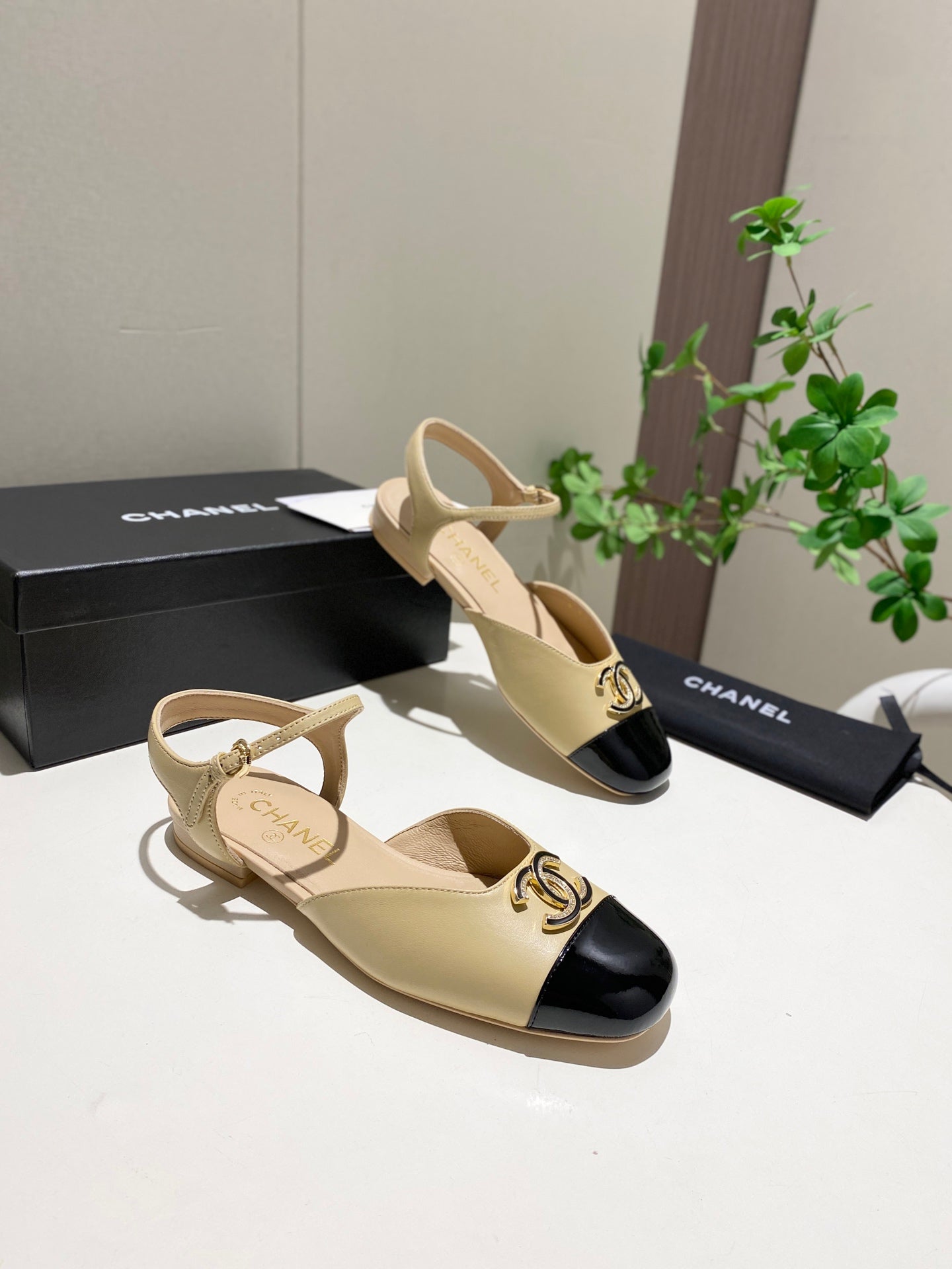 CC 25P Double-Buckle Mary Jane Sandals Black Beige Sheepskin 466990