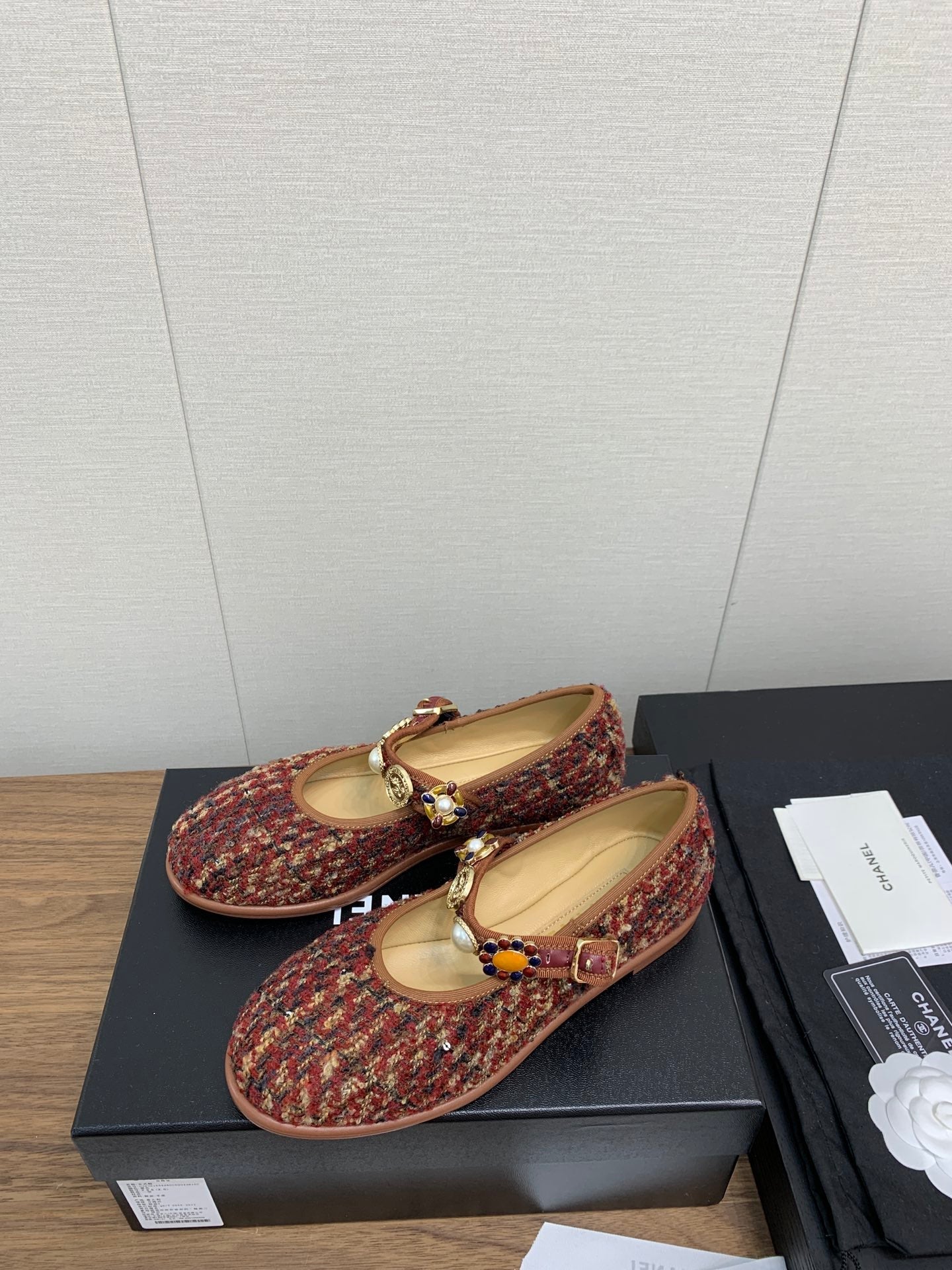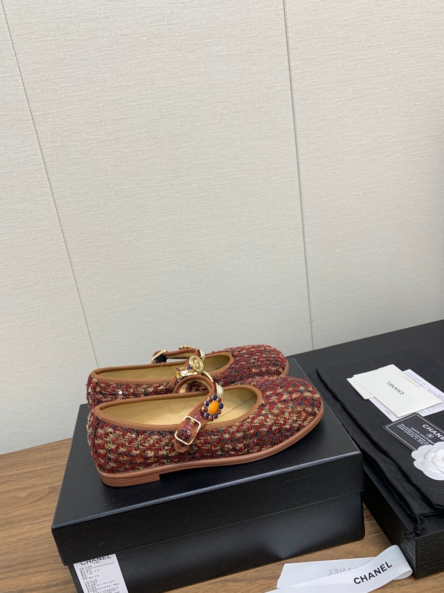 CC MARY JANES BROWN WOOL TWEED AND FABRIC