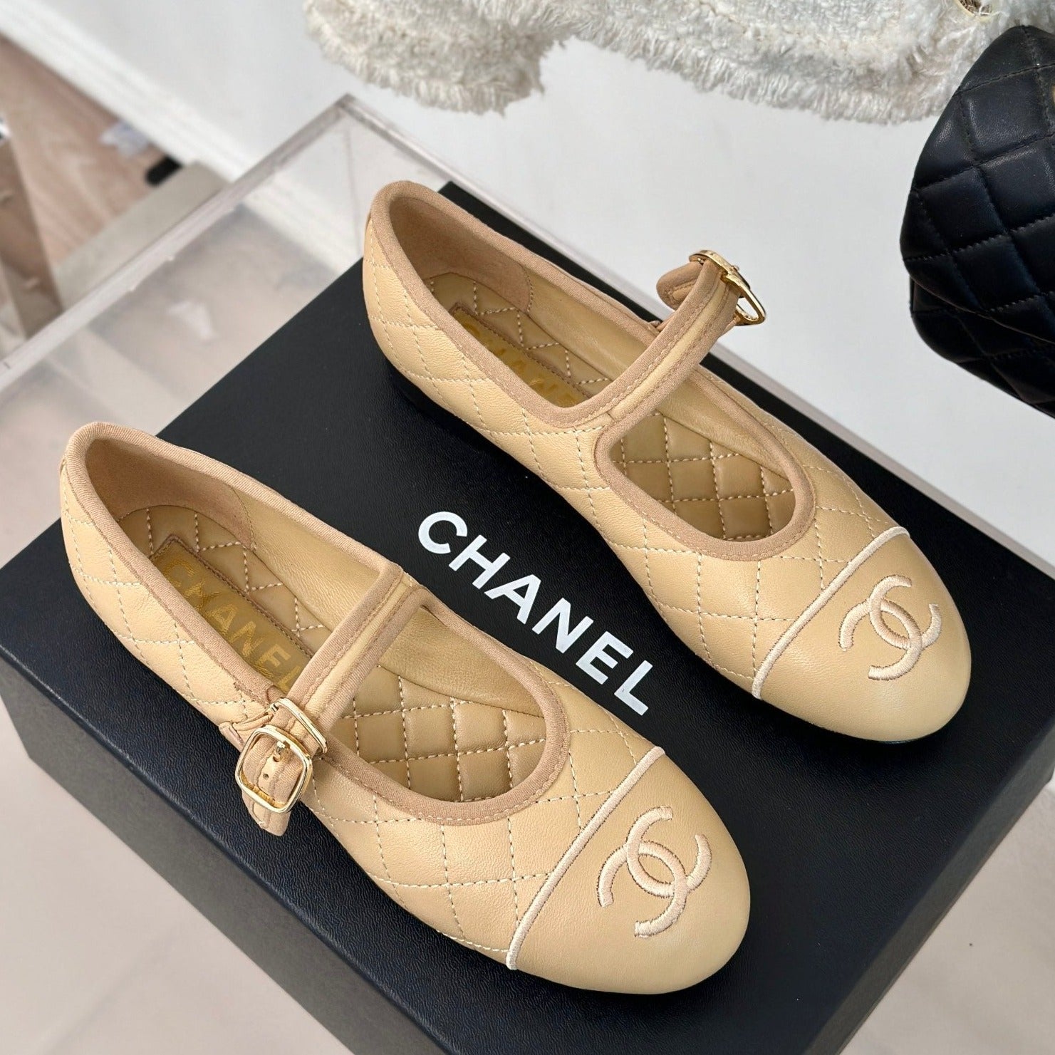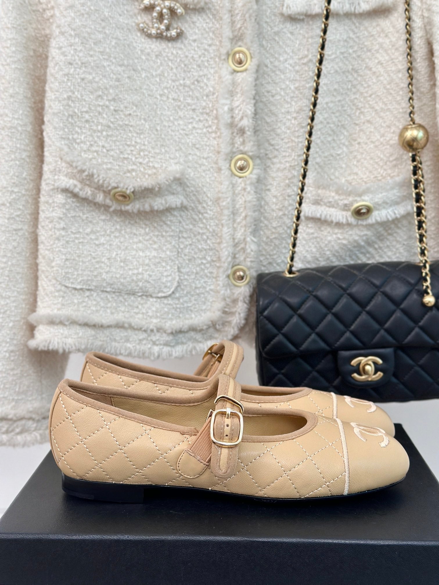 mary jane beige quilted lambskin
