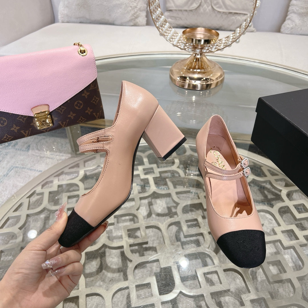 mary janes 60 double buckle beige calfskin black grosgrain