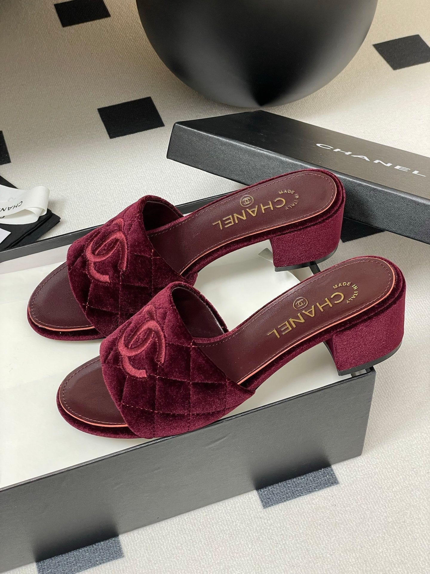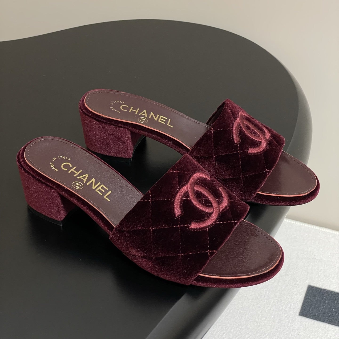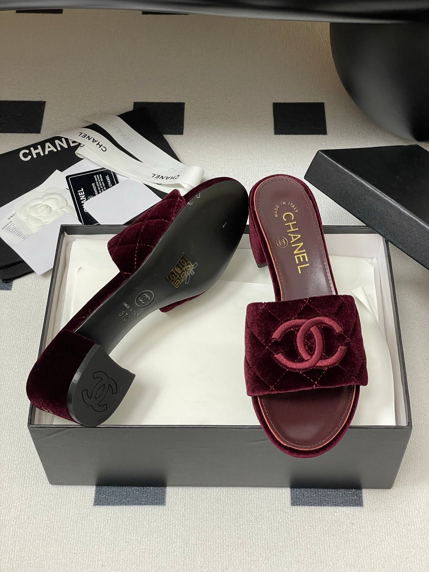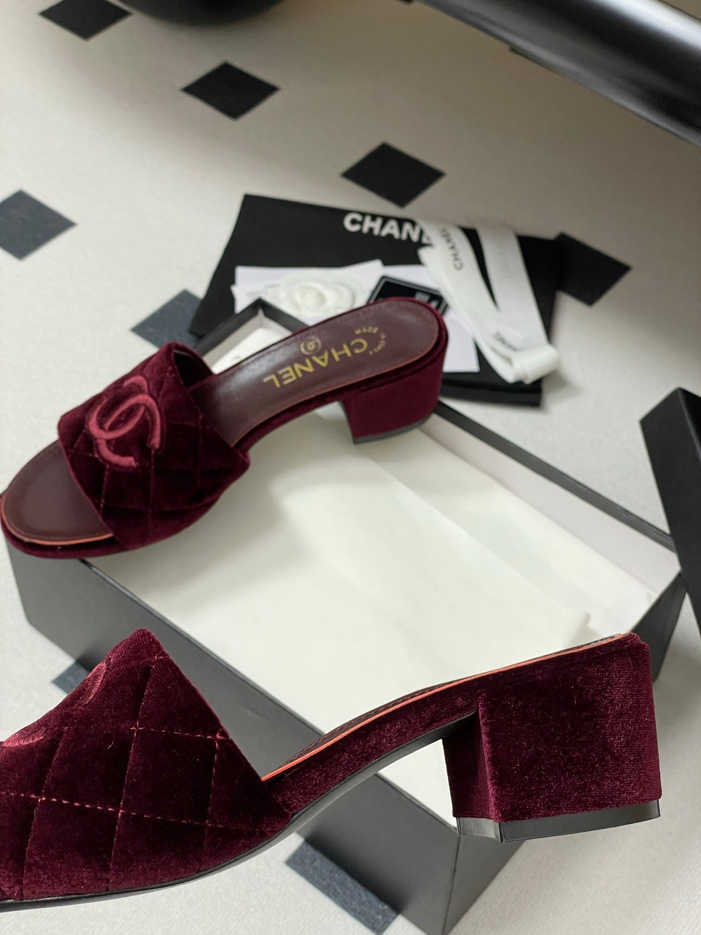 25S Embroidery Double C Mule 50mm Wine Velvet 247574