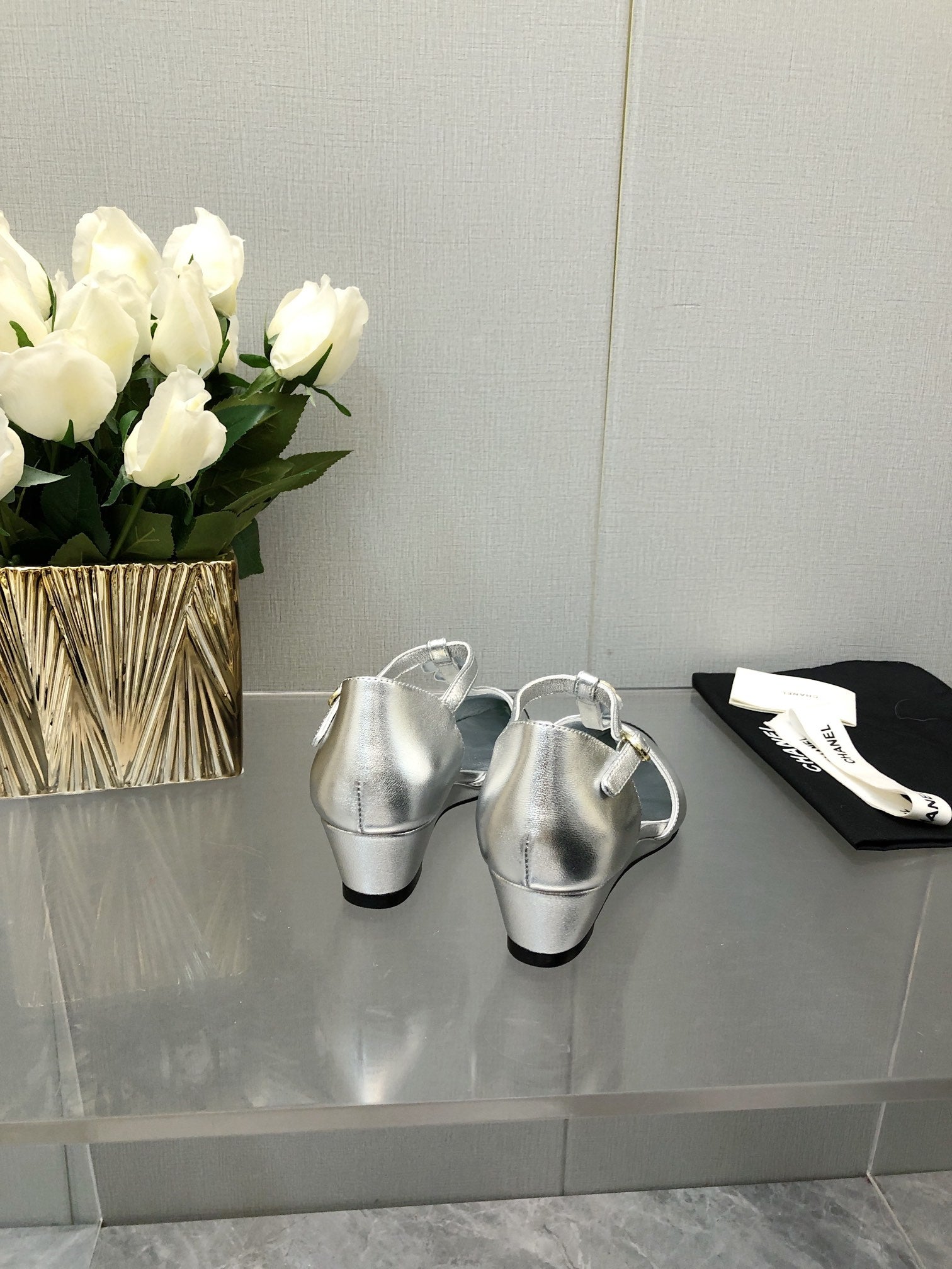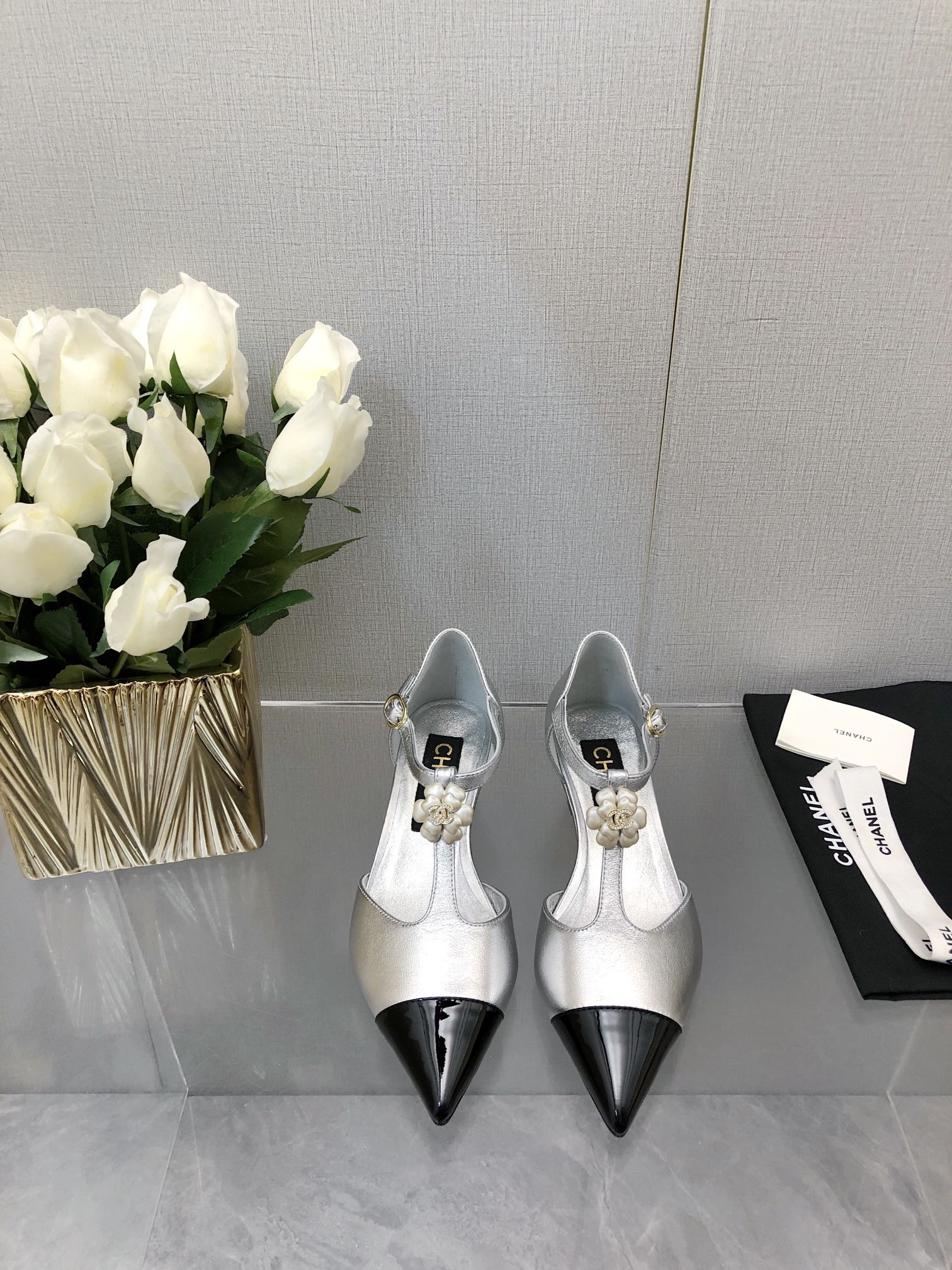 CAMELLIA CAP JANE SANDALS IN SILVER MIX BLACK LAMBSKIN
